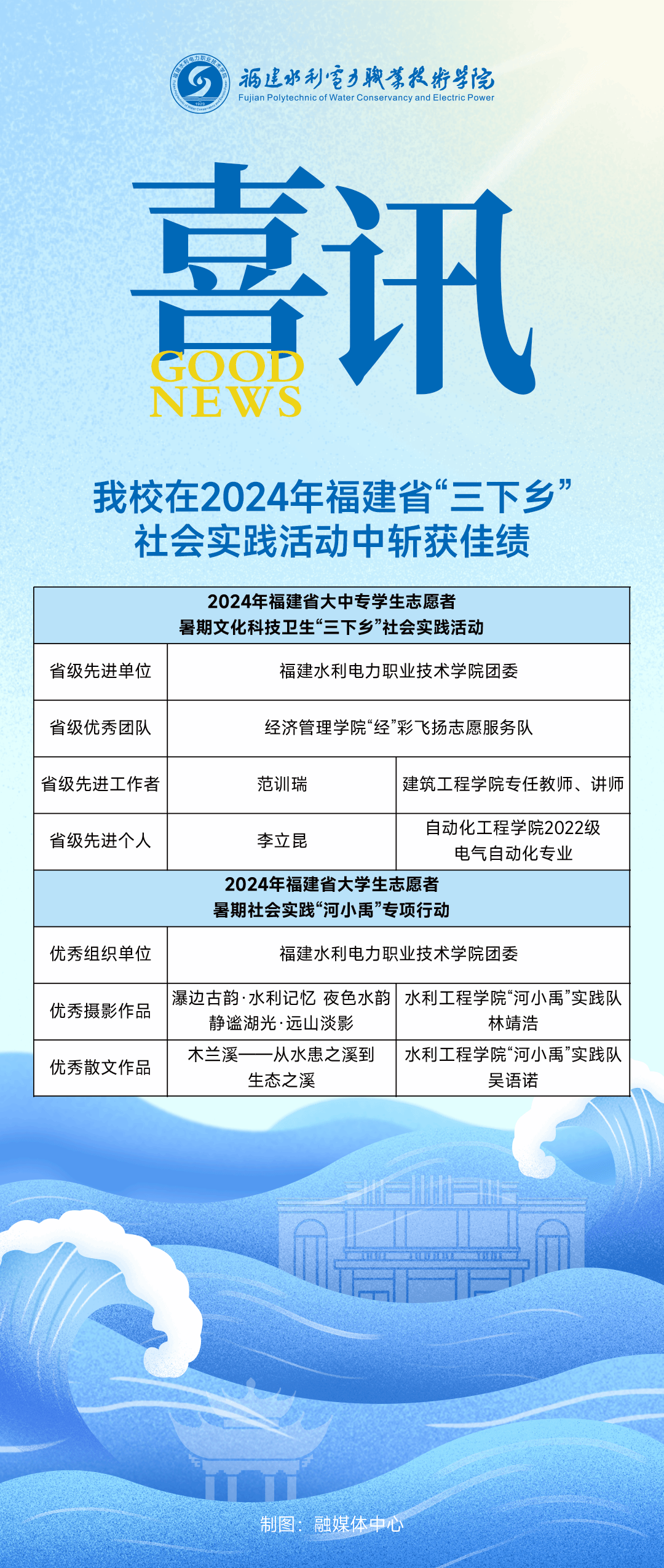 近日,2024年福建省大学生暑期文化科技卫生“三下乡”社会实践系列活动评选结果公布,我校获评共7项,连续三年获评“省级先进单位”。