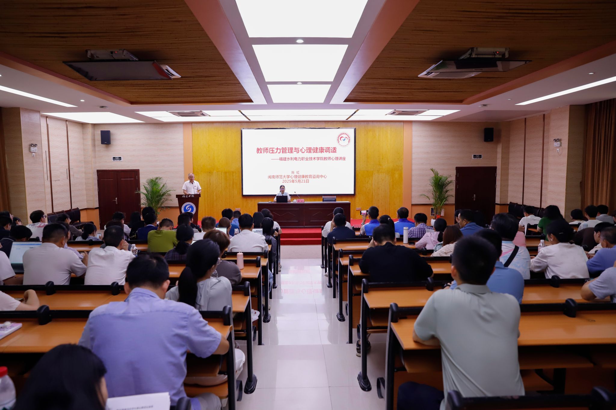 5月21日,学校特邀闽南师范大学心理健康教育咨询中心主任陈虹教授到校开展心理健康辅导讲座。讲座由副校长池长全主持,近200名专任教师到场聆听。