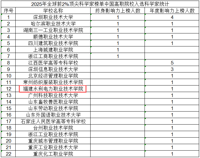 近日,美国斯坦福大学和国际权威学术出版社爱思唯尔共同发布2025年全球前2%顶尖科学家榜单(World's Top 2% Scientists)。我校经济管理学院教授、管理学博士彭耀平入选“2025年度科学影响力榜单”,同时我校也是全省唯一入选该榜单的高职院校。