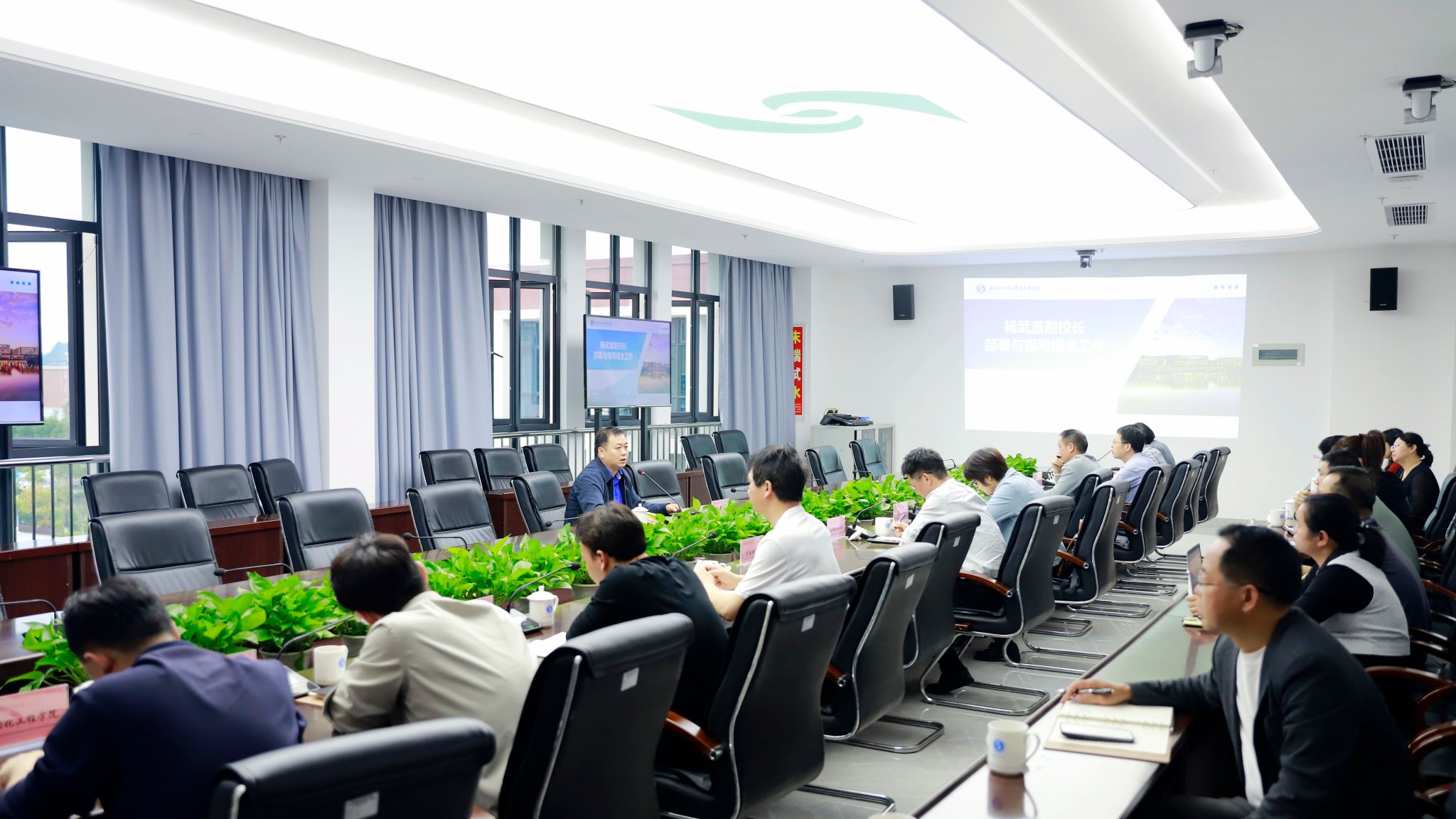 杨武盖指出,招生工作是学校发展的“源头活水”,是提升办学质量、加强内涵建设的关键抓手。面对平稳向好的形势与新的挑战,全校要进一步增强责任感,推动招生工作再上新台阶。他强调,要转变工作理念,摒弃盲目乐观心态,正视办学区位劣势,补齐短板,推动从“好招生”向“招好生”转变;要深化内涵建设,优化专业结构,形成“招生促就业、就业反哺招生与内涵建设”的良性循环;要压实工作责任,加强招生咨询服务,建强线上线下宣传阵地,做好信息共享与政策解读,全面提升招生工作质量。