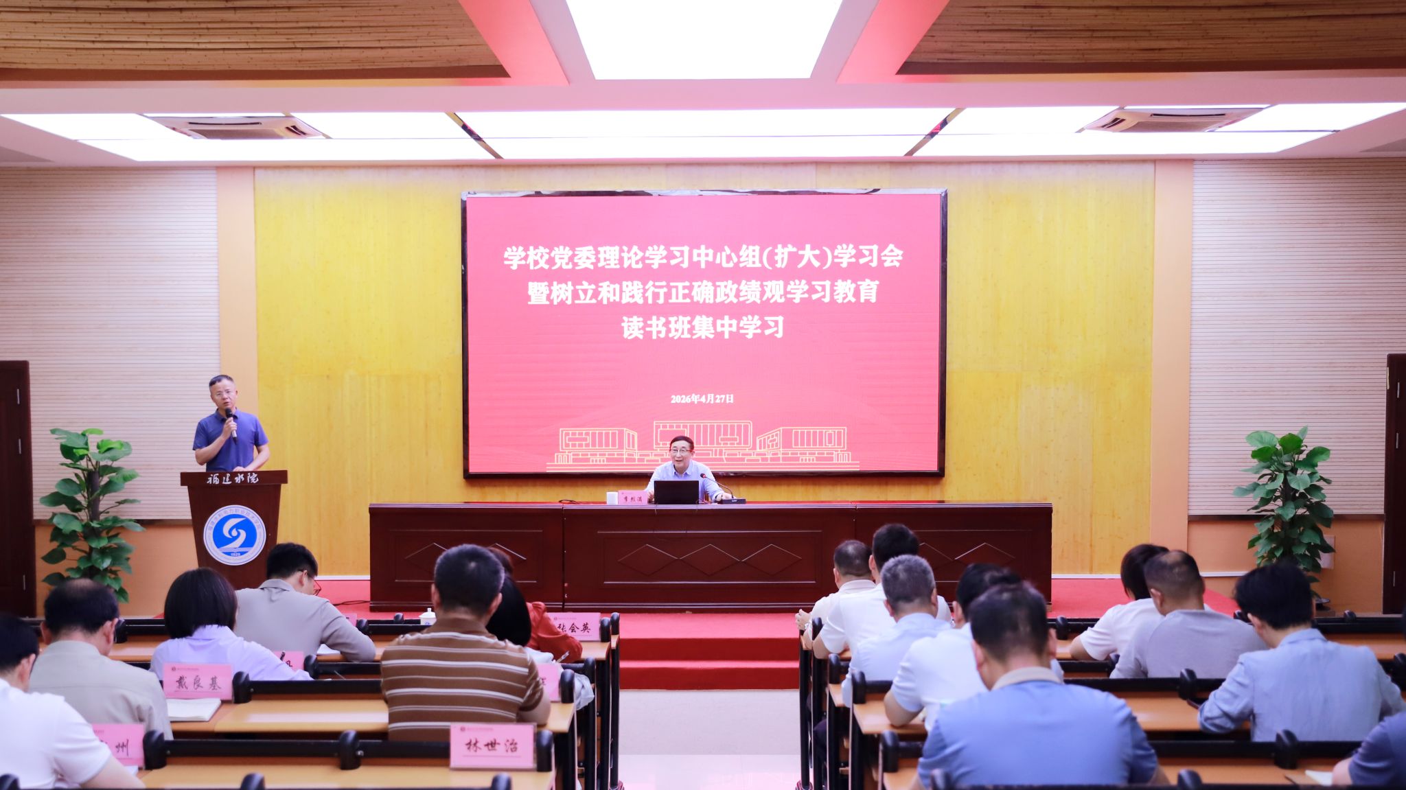 4月27日,学校党委理论学习中心组(扩大)学习暨树立和践行正确政绩观学习教育读书班第三次集中学习会举行,邀请省委党校党建教研部原副主任李烈满教授作专题报告。