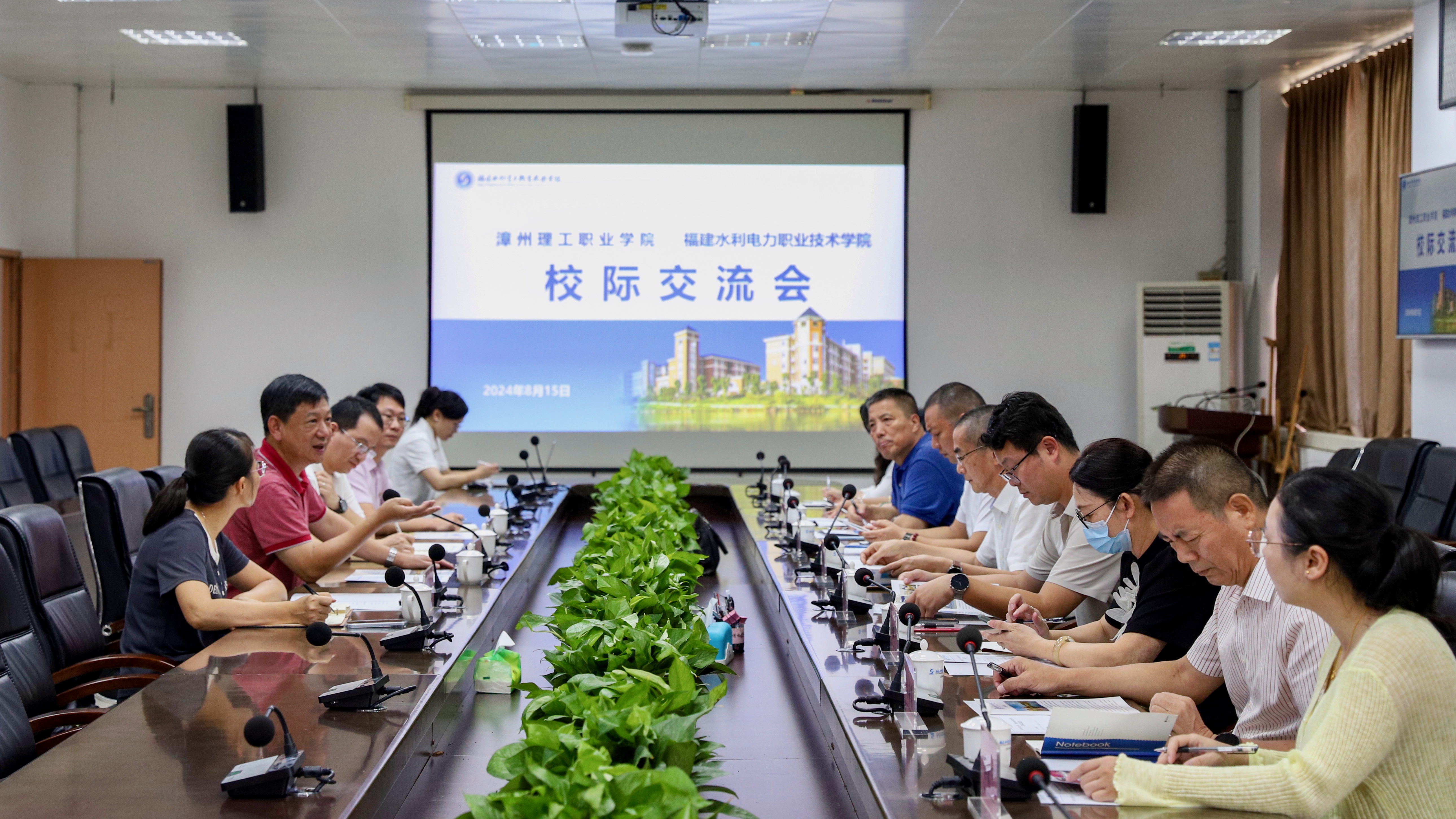 8月15日,漳州理工职业学院理事会执行理事杨元挺一行9人到我校进行校际交流。校长孙学耕亲切接待来宾一行,党政办、人事处、学生工作部等相关部门负责人参加座谈。