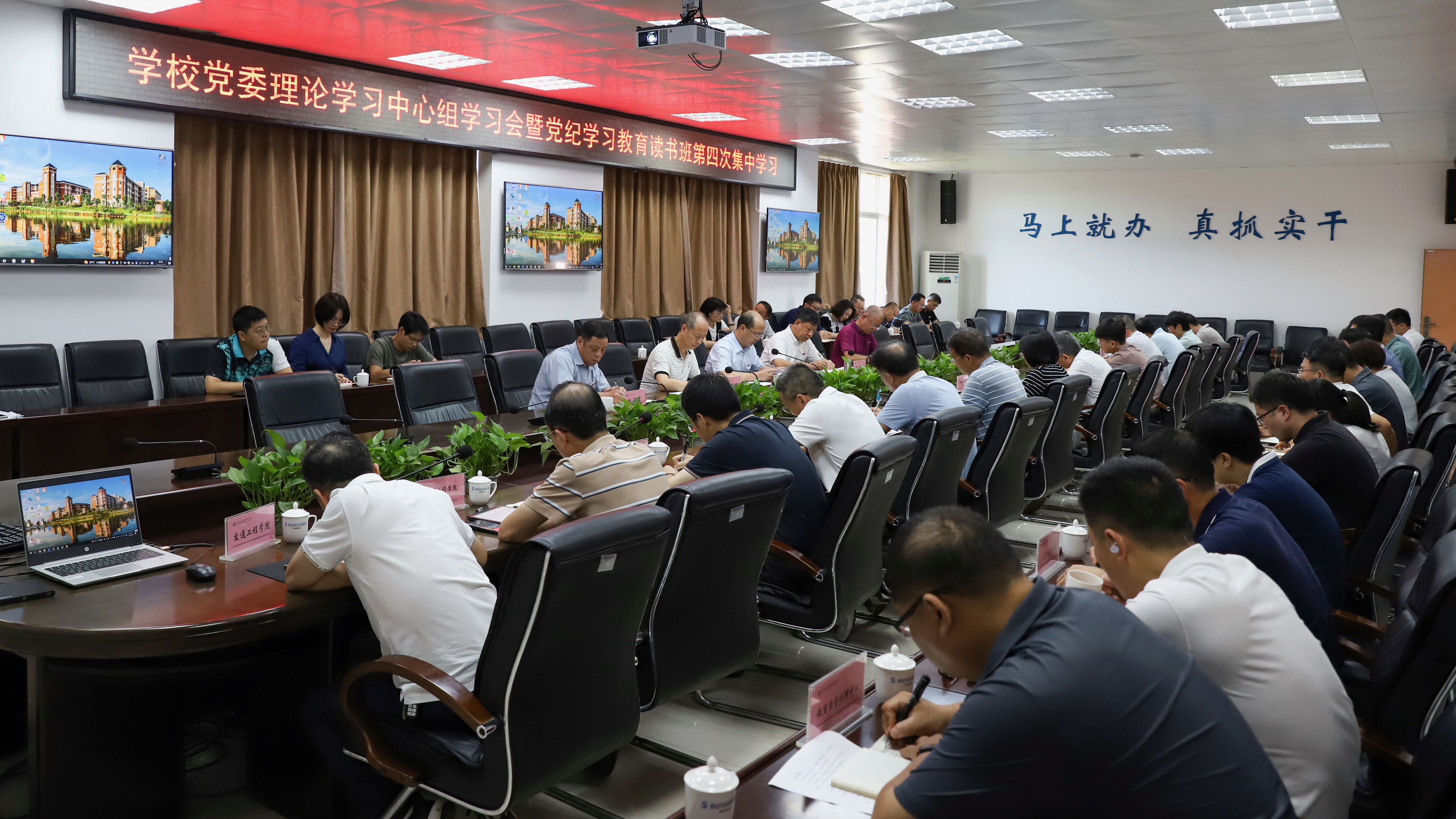 学校党纪学习教育读书班成员参加会议。电力工程学院院长和建筑工程学院党总支书记分别围绕有关专题作交流发言。