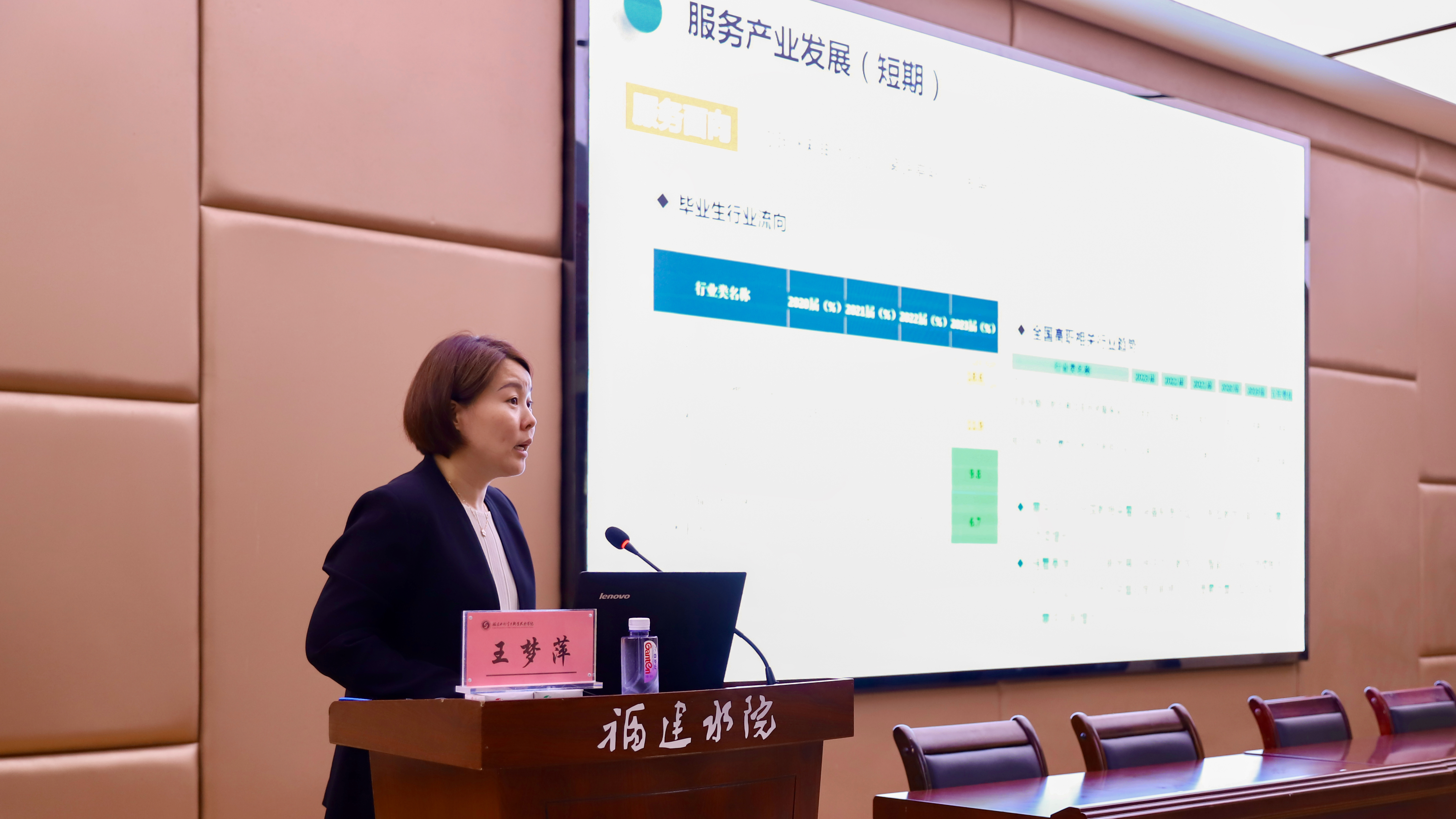 王梦萍以新时期推进现代职业教育体系建设改革的战略规划和五“金”新基建具体要求为出发点,结合学校2022—2023学年人才培养质量监测数据,从服务贡献、学生发展、育人能力、校企合作、发展保障等方面进行详细的数据分析和阐述。她结合国家双高校、省级双高校的参照数据以及双高校遴选标准的成效指标,分析我校办学特色优势和需要关注的方向,并提出解决问题的相关案例参考。
