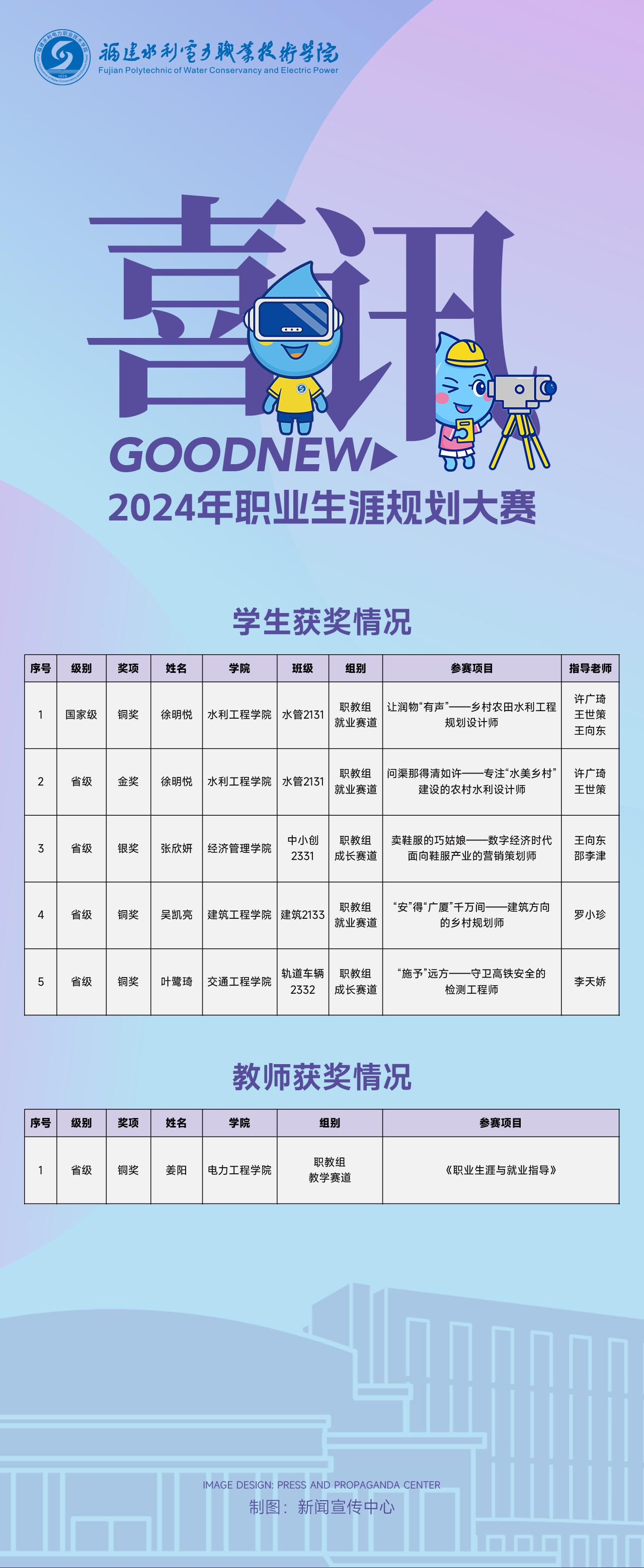 在此前结束的首届全国大学生职业规划大赛福建省赛中,我校共4名学生和1名教师入围,实现“人人获奖,满载而归”,取得1金1银3铜的历史最佳成绩。