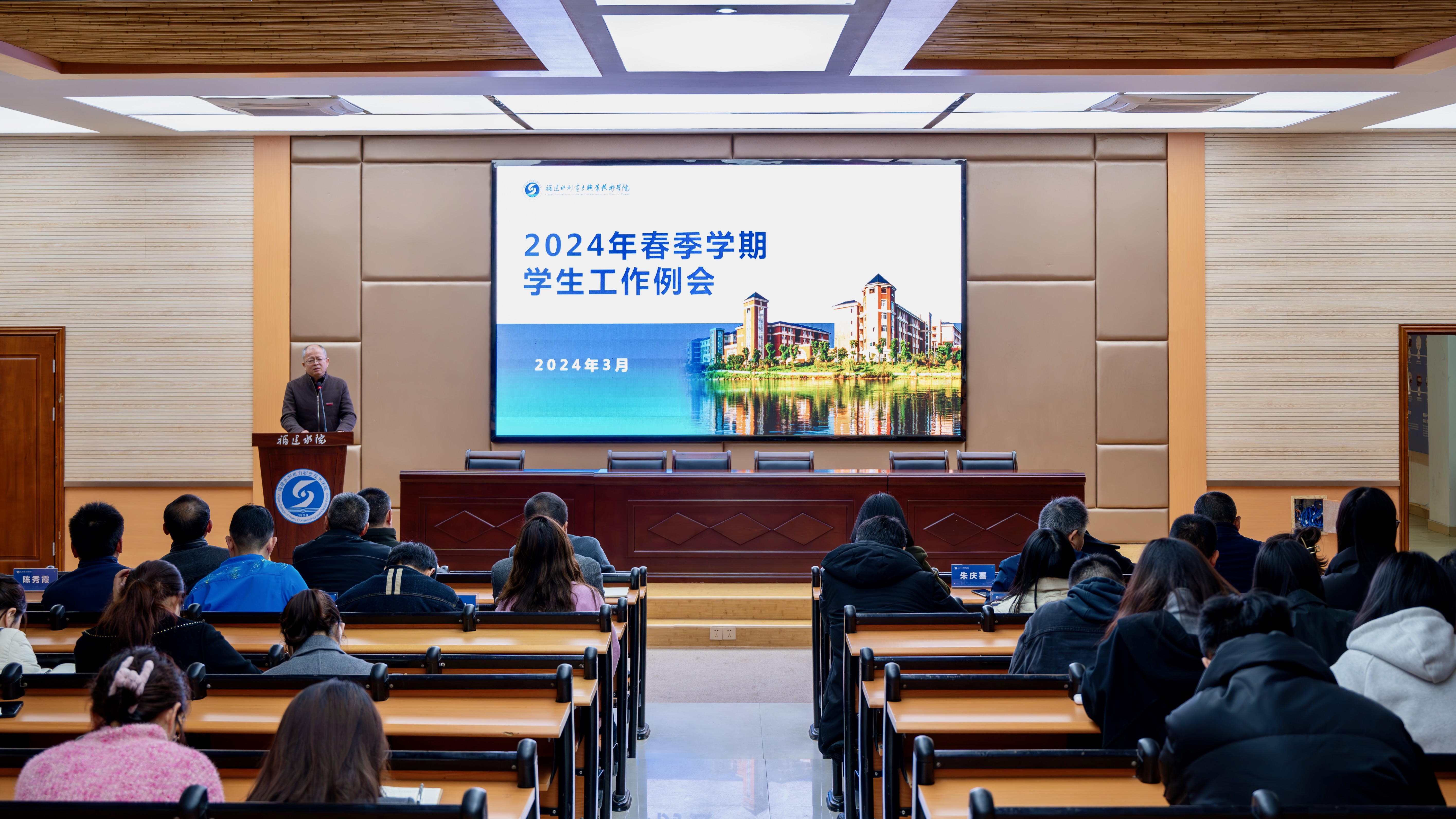 3月6日下午,学校在禹兴园3-D01召开学生工作例会,副校长池长全出席会议并讲话,有关职能部门负责人,各二级学院党总支、学工办(团总支)负责人,全体专职辅导员参加会议。