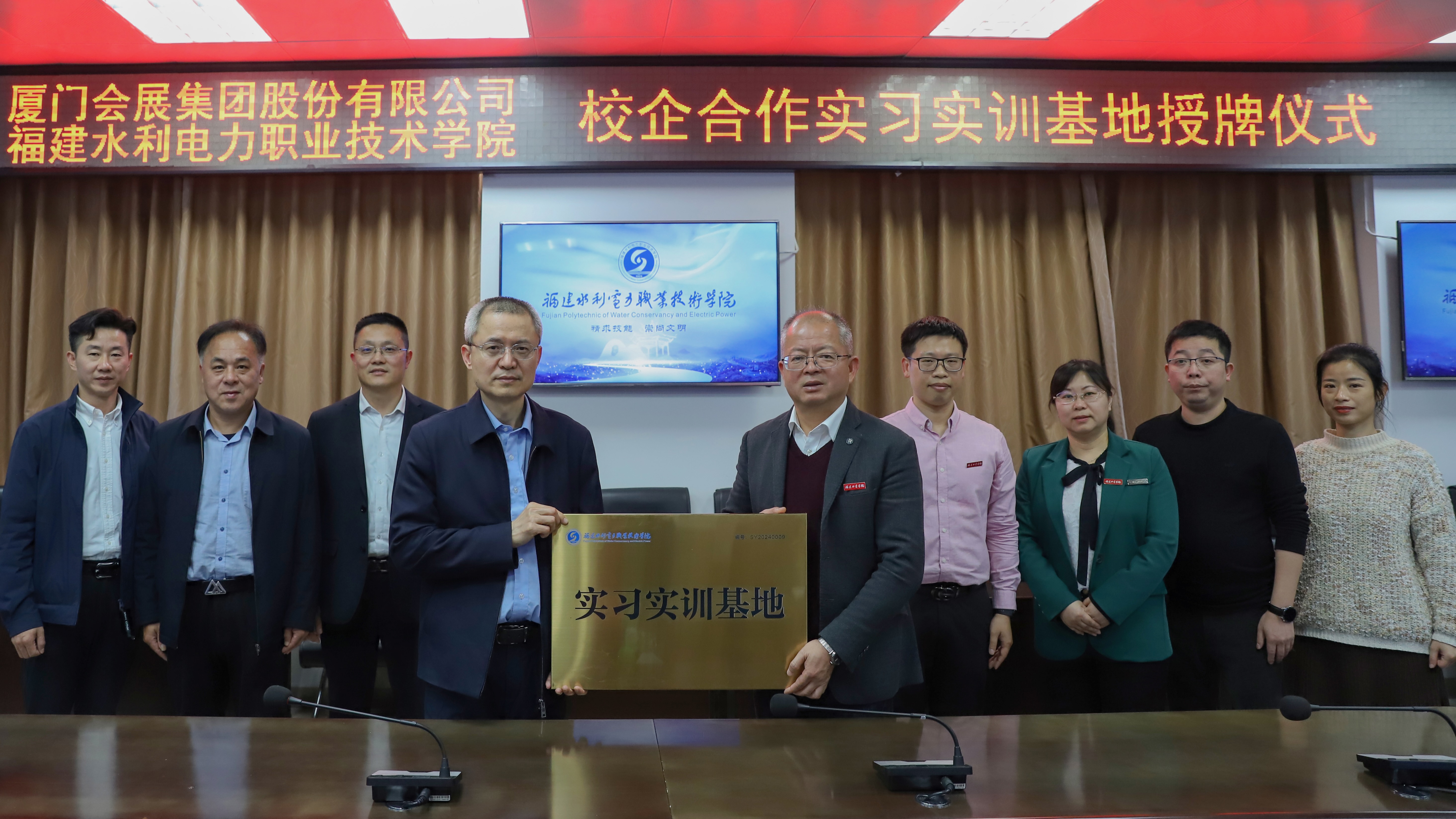 3月20日下午,厦门会展集团股份有限公司(以下简称“集团”)实习实训基地授牌仪式在我校举行。副校长池长全,集团副总经理陈永裕,集团保安公司总经理黄孝飞,集团保安福州分公司副总经理李跃昌共同出席。