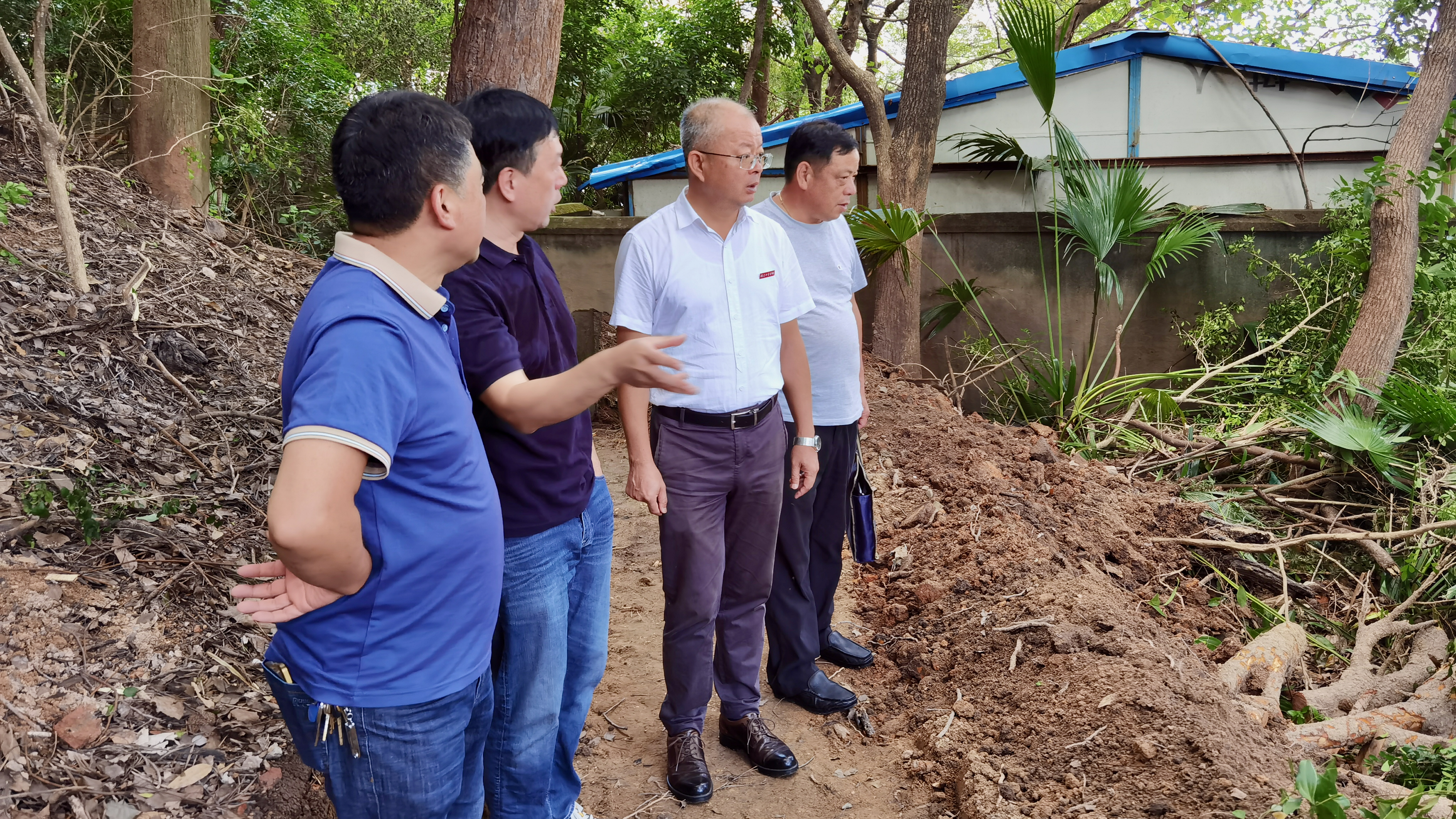 池长全首先实地查看了受台风“海葵”影响的食堂、后山围墙以及教室边坡,详细了解台风后场地设施受损情况和恢复重建进度。池长全要求福州校区要先行整治滑坡处,开挖排水渠,确保校园安全,后续要加紧制定整改方案,做好边坡加固、围墙改造以及排洪沟建设。