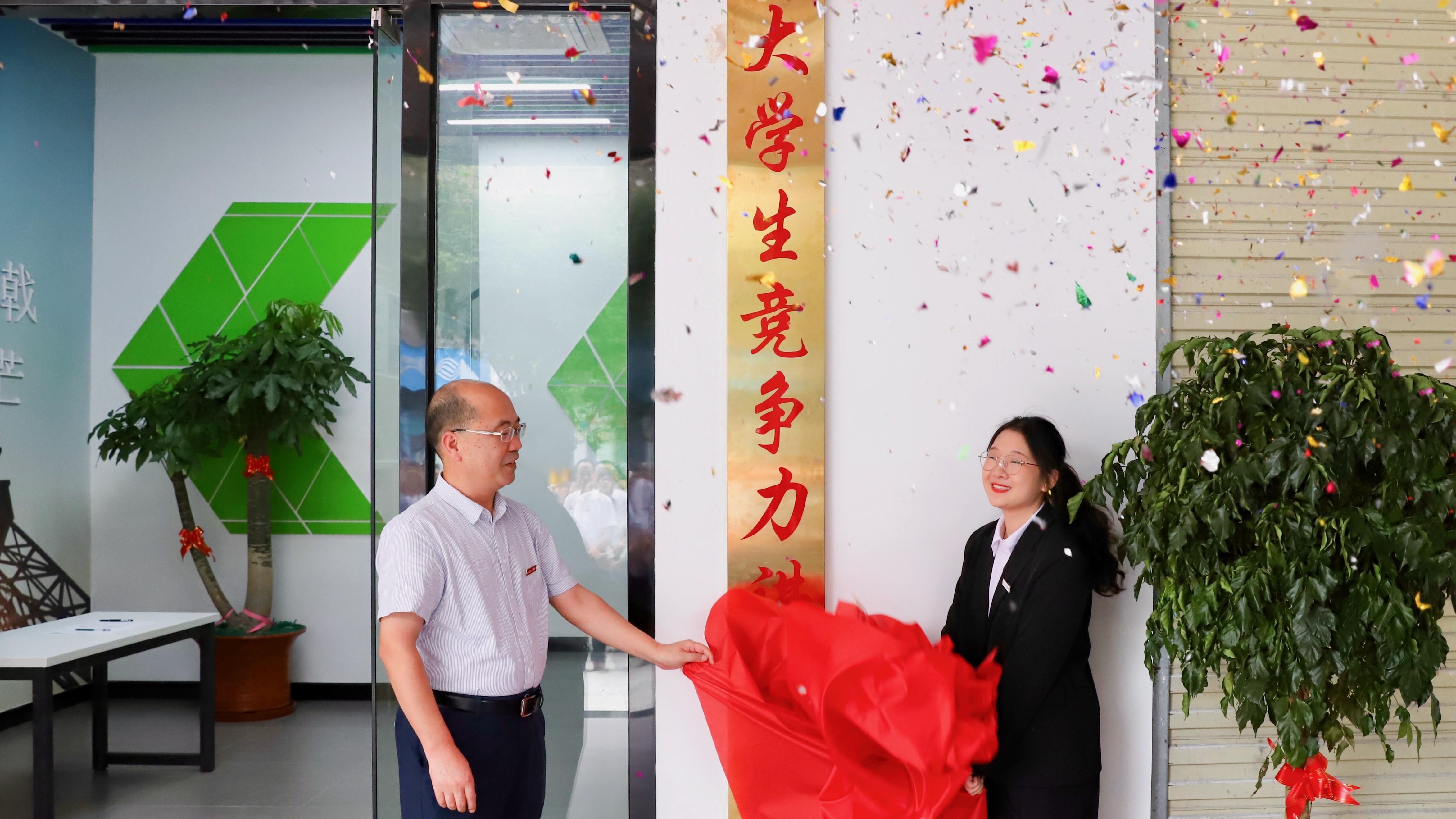 6月17日上午,学校“大学生竞争力讲习所”揭牌仪式暨首期培训班开班式在大学生三创科技园举行。学校党委书记李建兴与学员代表沈澜同学共同为“大学生竞争力讲习所”揭牌,并作开班致辞。