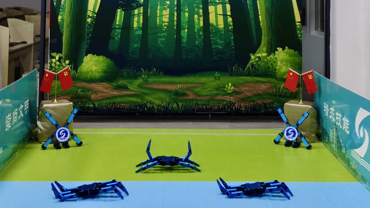 近日,第25届中国机器人及人工智能大赛全国总决赛落下帷幕。经省级竞赛与全国初评推荐,我校智慧互联名师工作室徐明、王琳老师指导的闫金涛、陈勇强、代一凡团队作品“狮王争霸”和林雪、连非、方煜绅团队作品“水拟万物”入围“多足异形机器人集体舞”赛项全国总决赛,分别斩获一等奖和三等奖。
