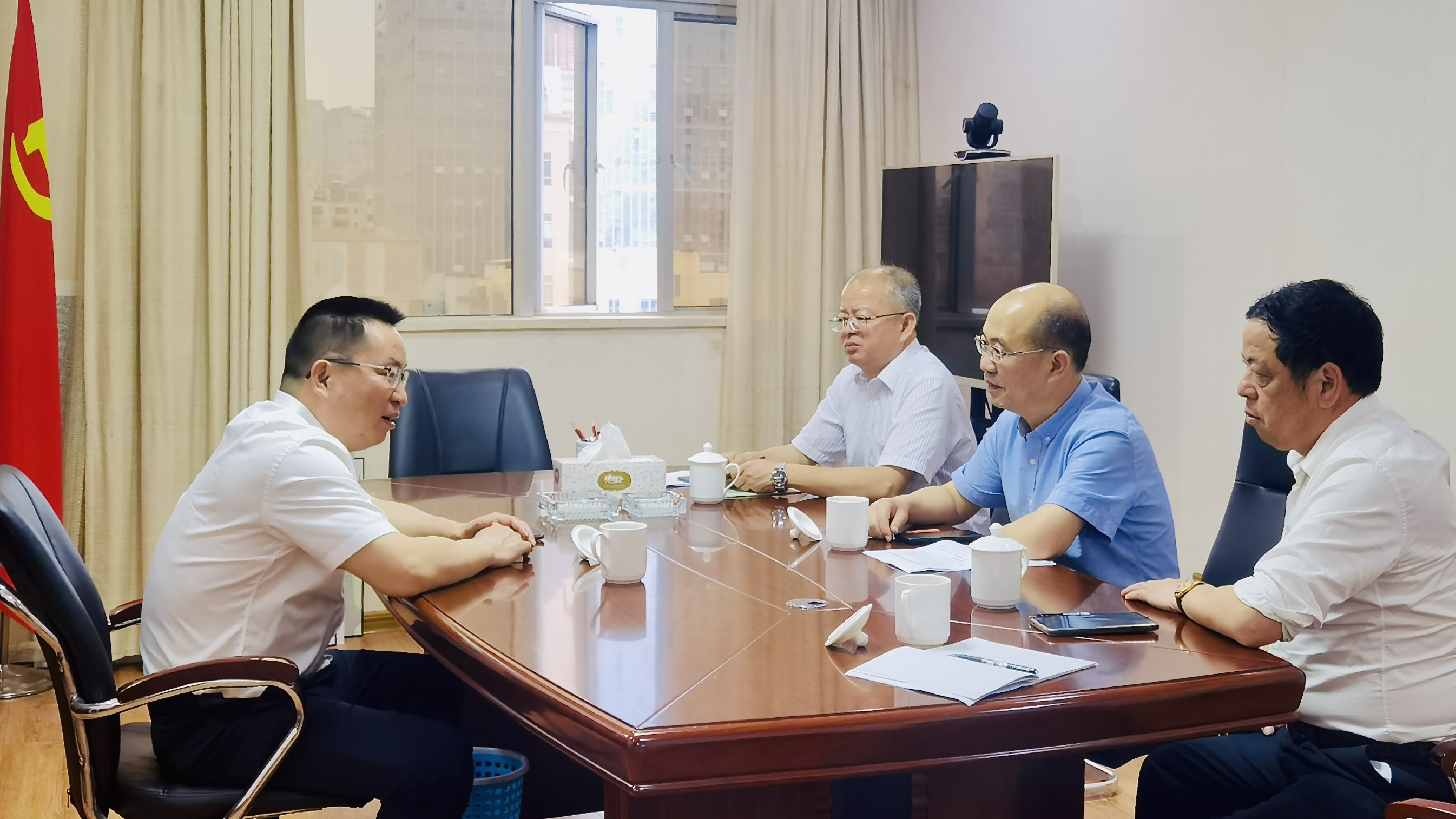 5月8日,学校党委书记李建兴、副校长池长全、福州校区管委会副主任彭泽民一行前往中共福州市晋安区委拜会交流,区委书记林涛热情接待。