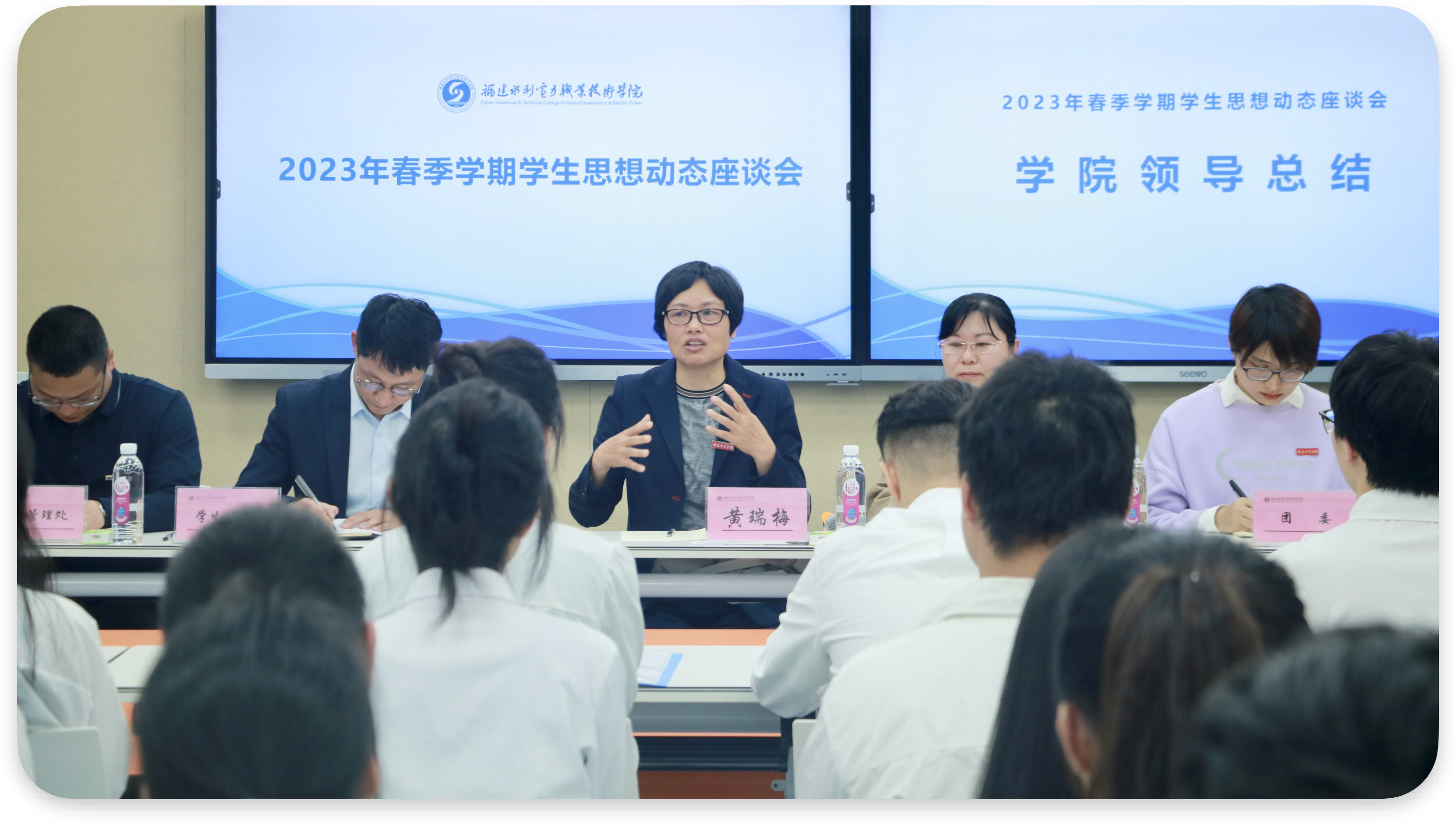 3月6日下午,学校召开2023年春季学期学生思想动态座谈会,学校党委副书记黄瑞梅出席活动并与学生亲切交谈。