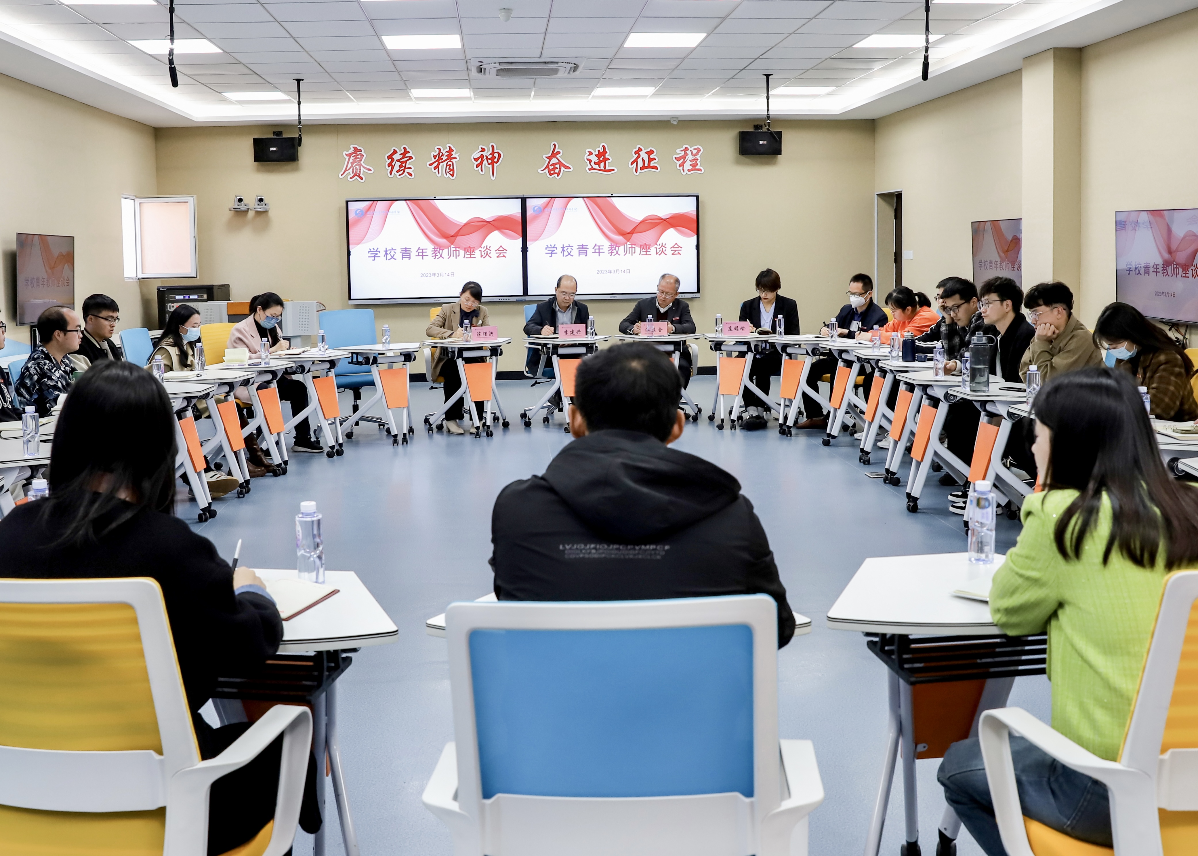 3月14日下午,学校在禹兴园6-402召开青年教师座谈会。学校党委书记李建兴,副校长池长全出席会议并与青年教师深入沟通交流。人事处、团委负责同志,各二级学院20余名青年教师代表参加座谈会。