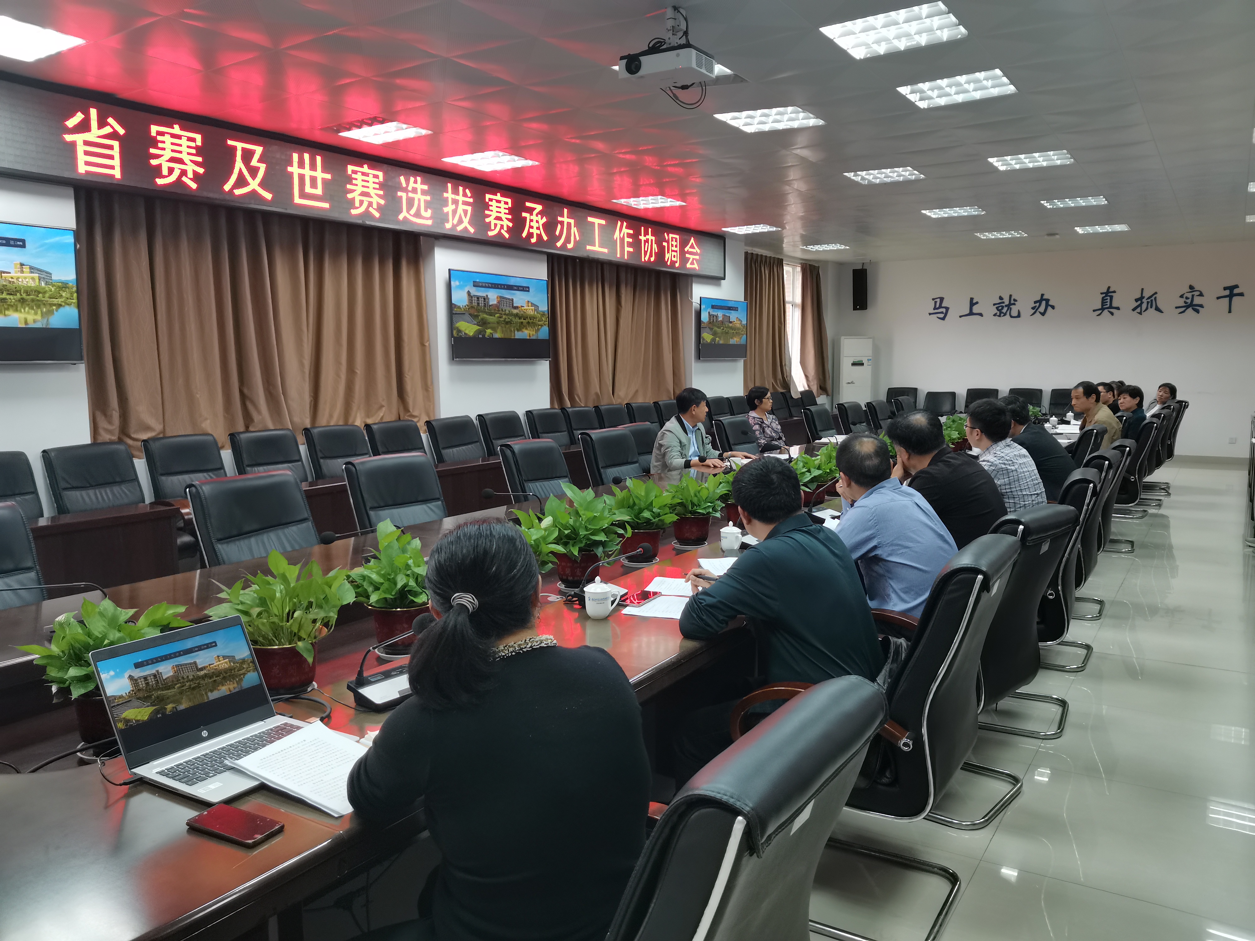 会上,教务处介绍了我院承办三个赛项的参赛情况,6个工作组的工作任务和各项工作的进展情况。二级学院汇报了各赛项的赛前准备情况。