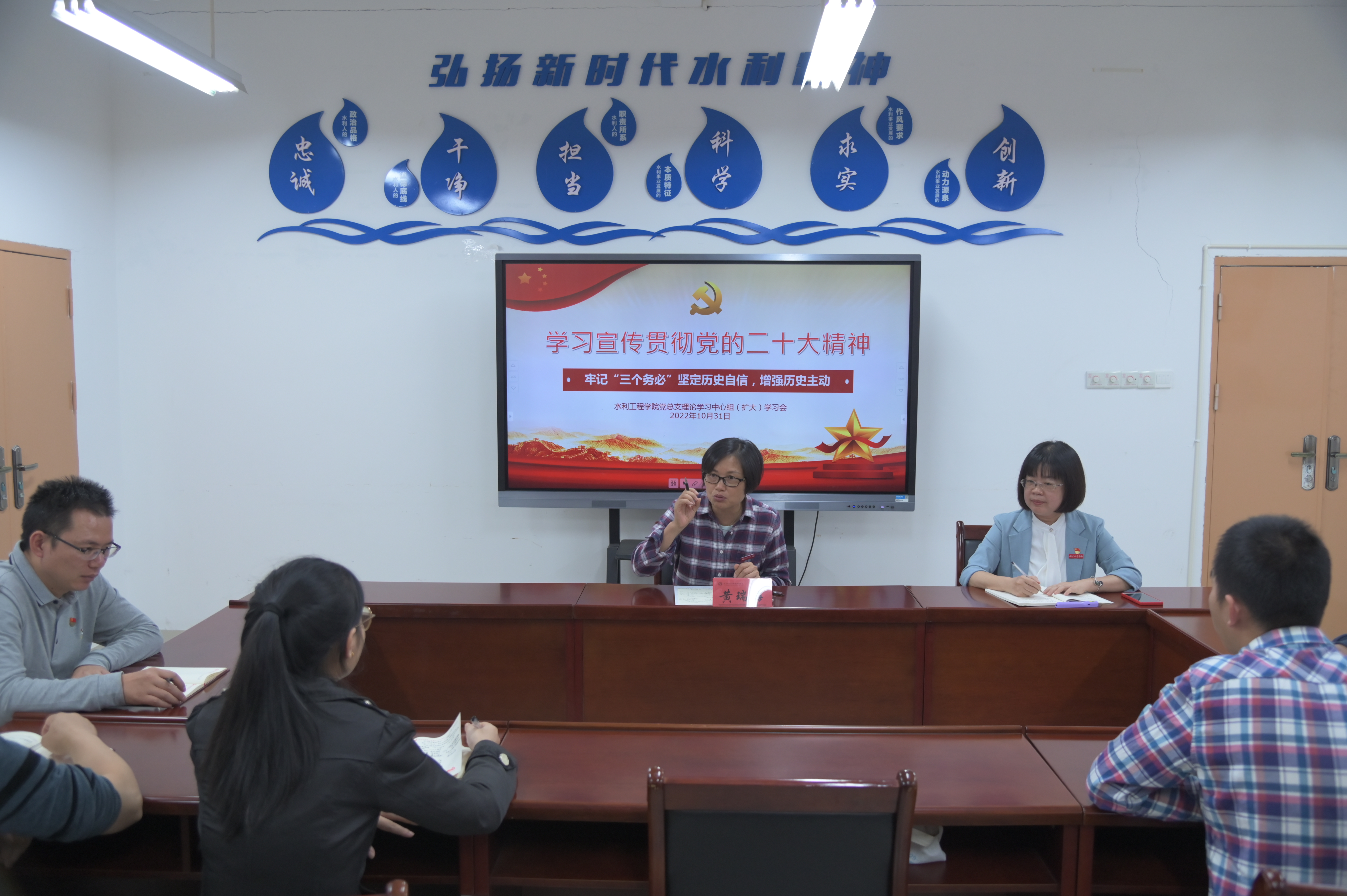 10月31日下午,水利工程学院召开党总支理论学习中心组(扩大)学习会。学院党委副书记黄瑞梅出席并指导,水利工程学院党总支委员、各党支部书记、支委、各教研室主任参加学习。