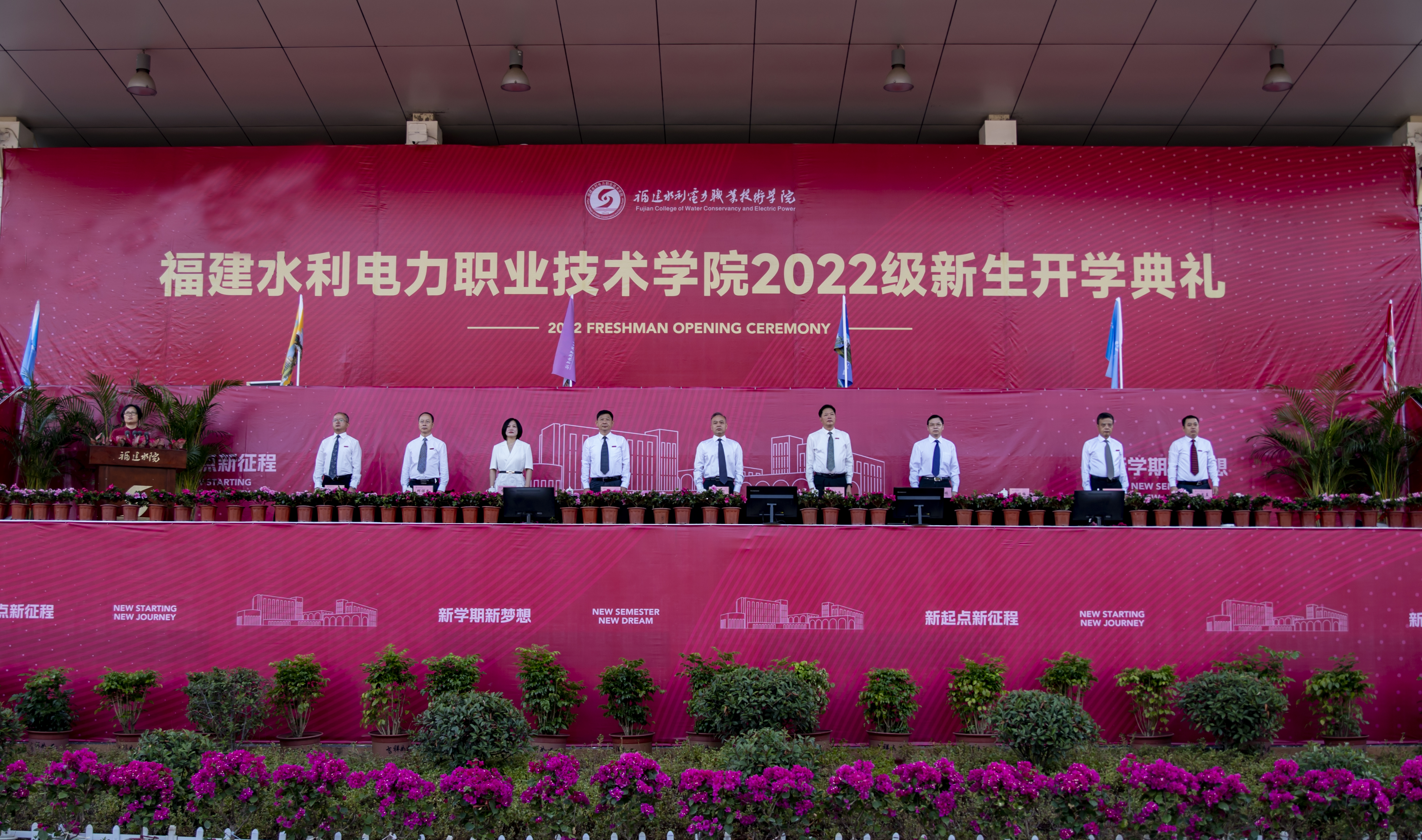 9月17日上午,学院2022级新生开学典礼在田径场隆重举行。省水利厅副厅长丘汀萌,省水利厅人事处处长许瑞鹏,省水利水电勘测设计研究院信息处处长、省水利学会副秘书长李玉,学院党政领导班子全体成员出席开学典礼。典礼由学院党委副书记黄瑞梅主持。