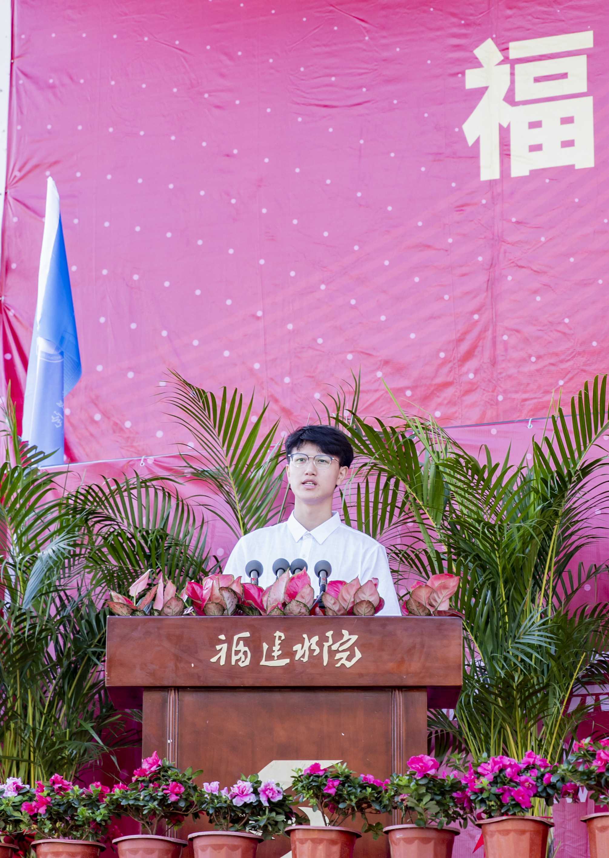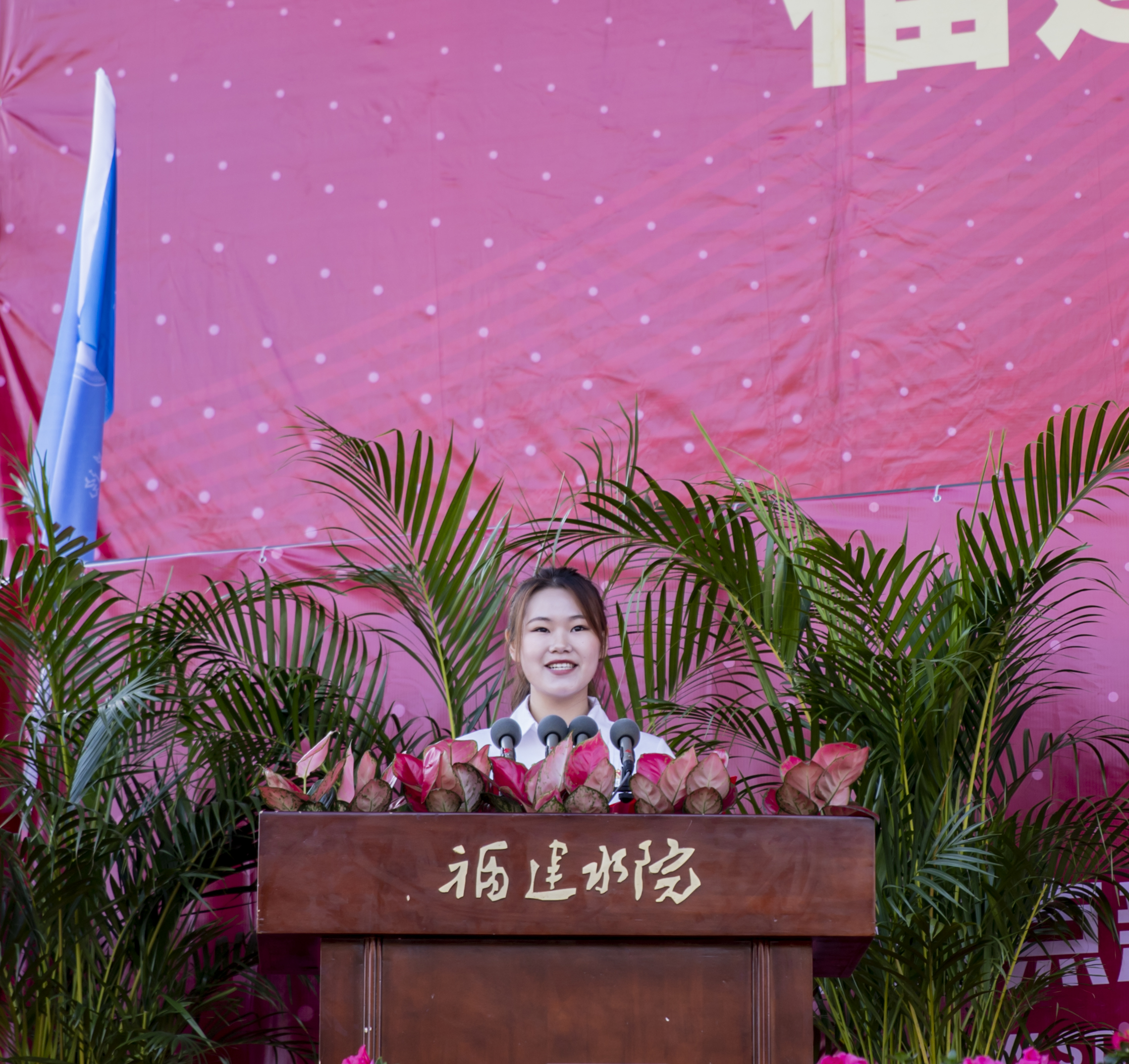 自动化工程学院詹昊栋(机电一体化2234)作为新生代表讲述了自己初到水院感受的满满温暖,号召同学们要以青春之我、奋斗之我,为民族复兴铺路架桥,为祖国建设添砖加瓦。