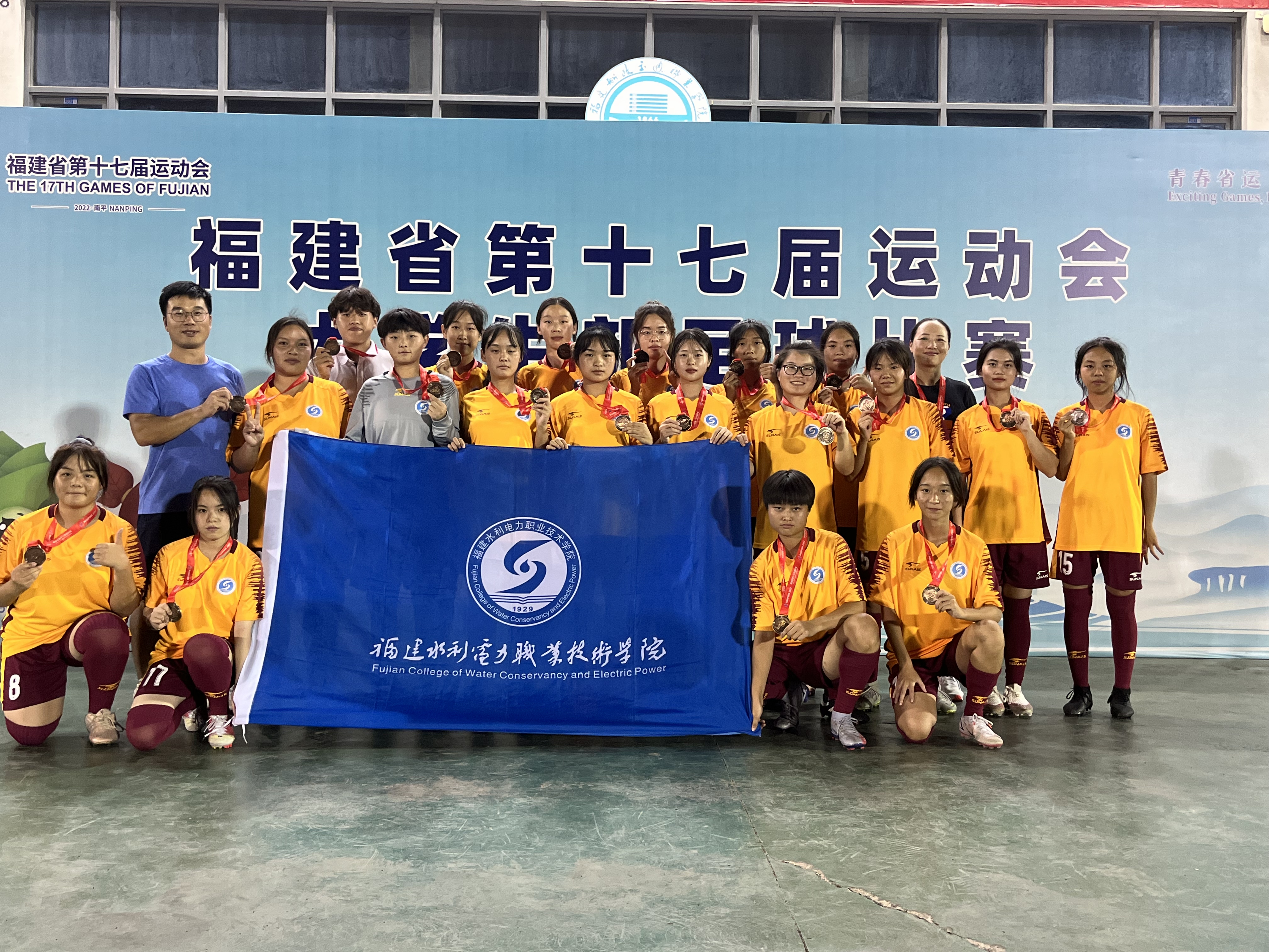 7月21日,福建省第十七届运动会(大学生部)足球比赛丙组在福建船政交通职业学院仓山校区落幕。经过七天的激烈比拼,我院女子足球队首次参赛就取得铜牌的优异成绩,男子足球队获得第六名、并获得体育道德风尚奖。