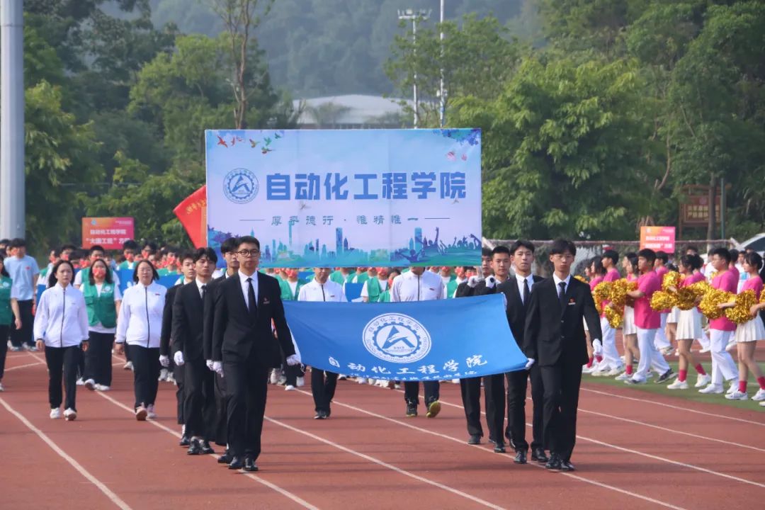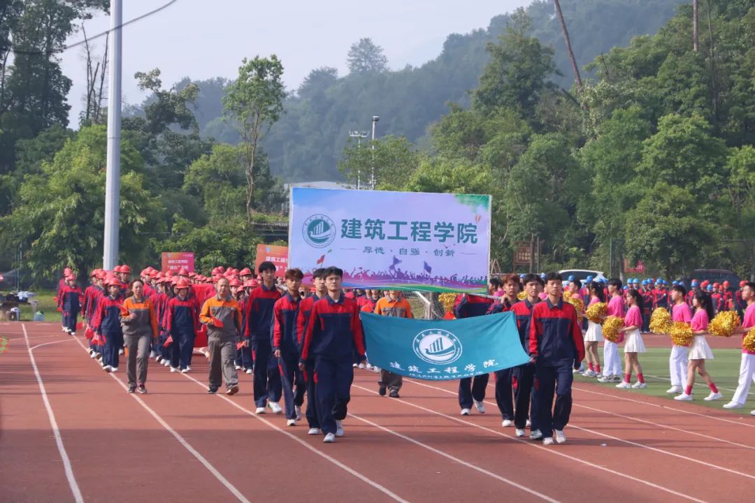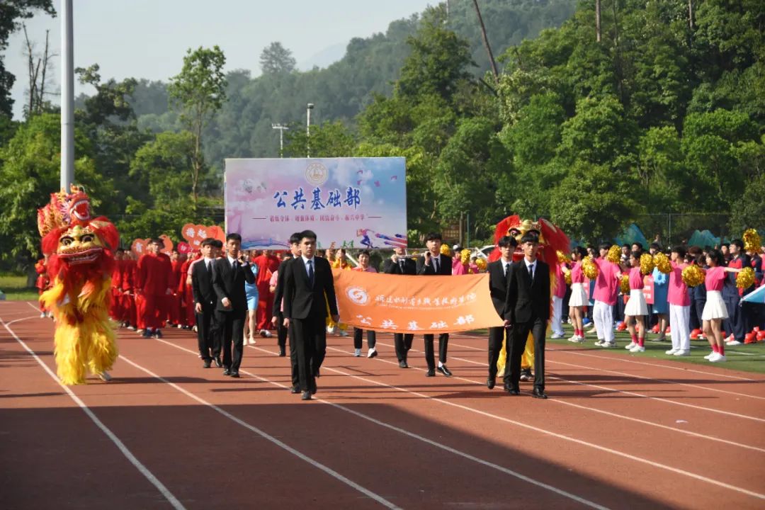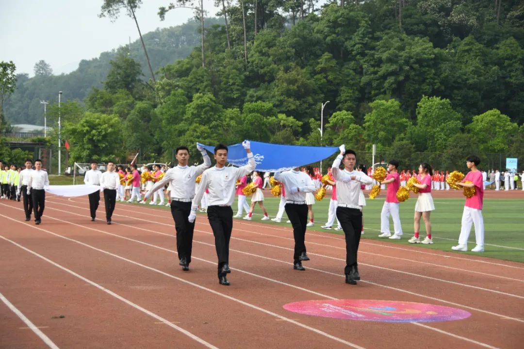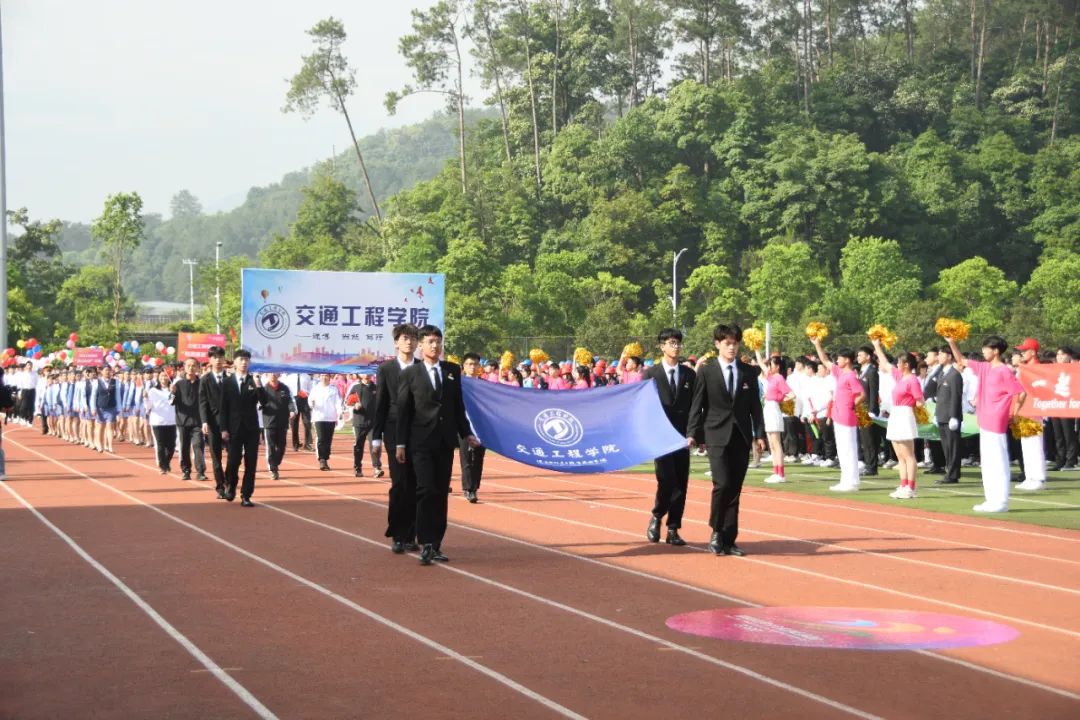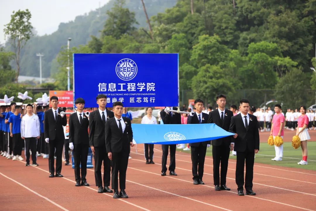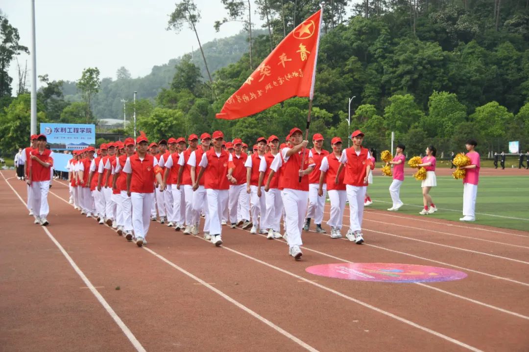 上午8时,伴随着嘹亮激昂的歌声,国旗队、仪仗队、裁判员方队、青年突击队、各二级学院方阵等依次入场。