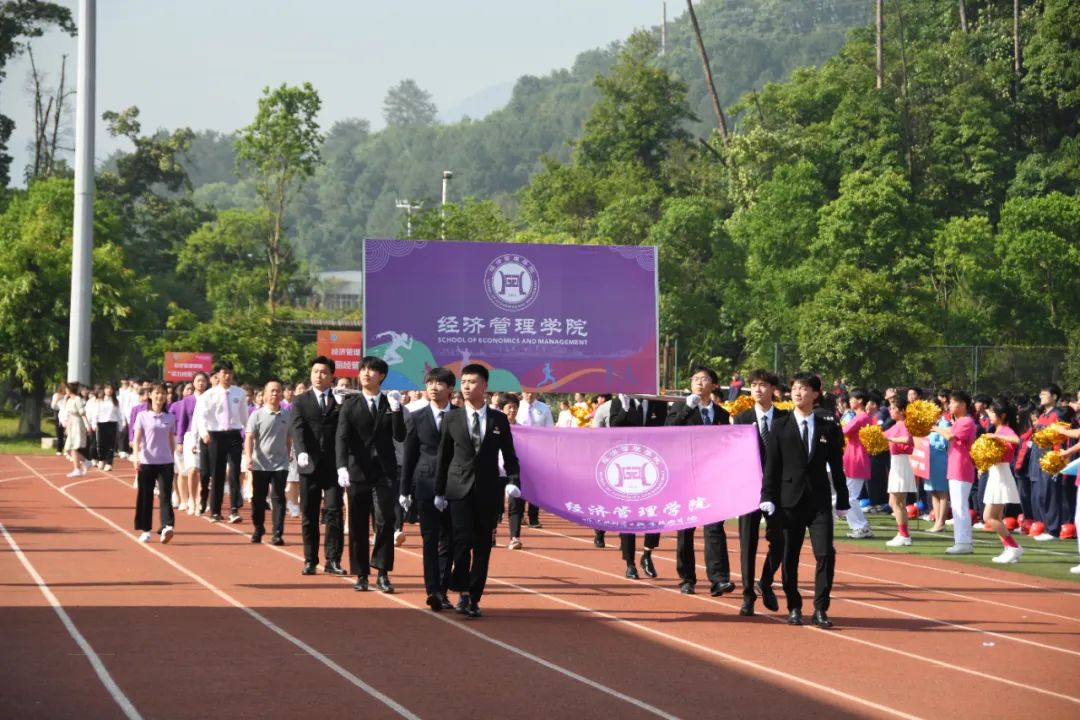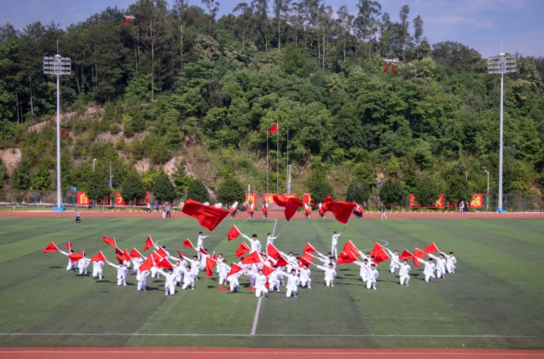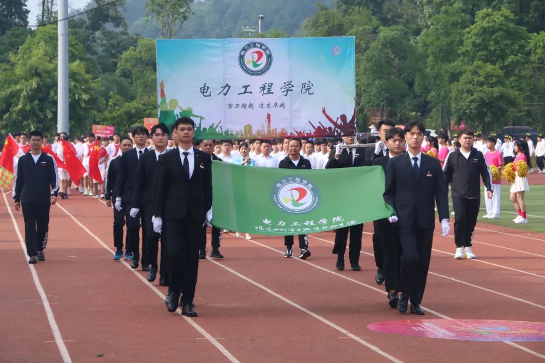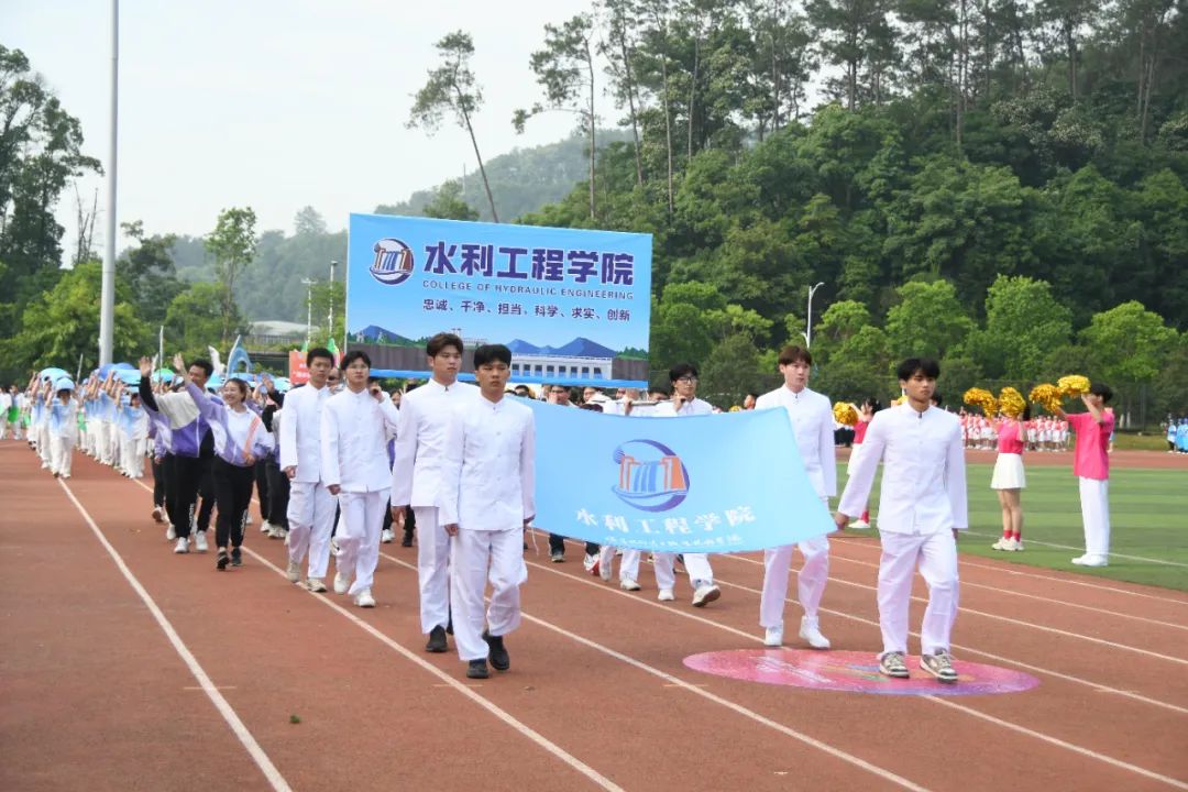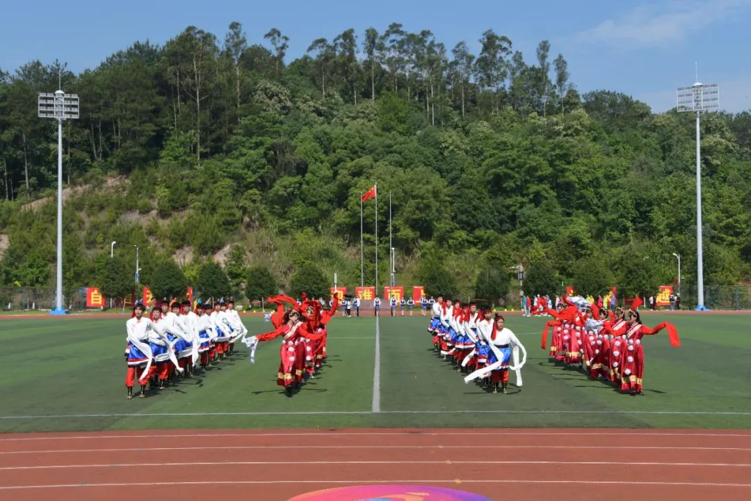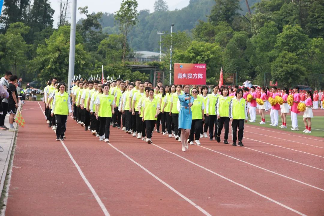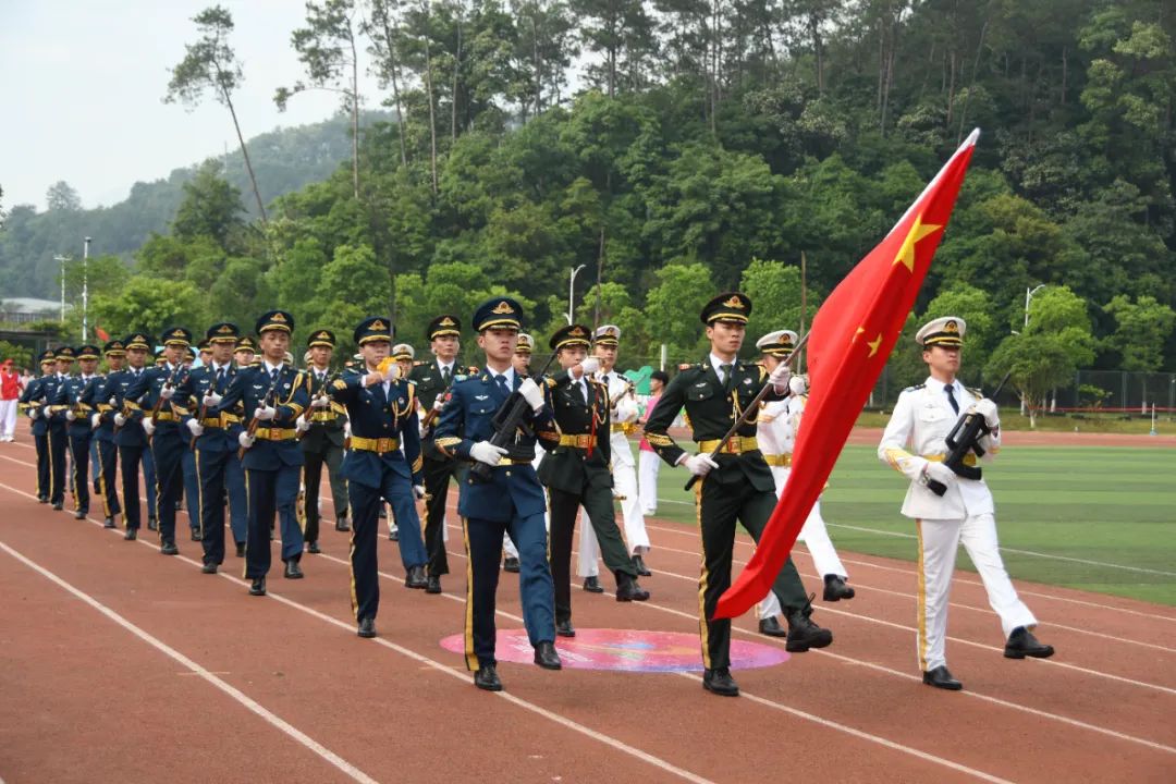 上午8时,伴随着嘹亮激昂的歌声,国旗队、仪仗队、裁判员方队、青年突击队、各二级学院方阵等依次入场。