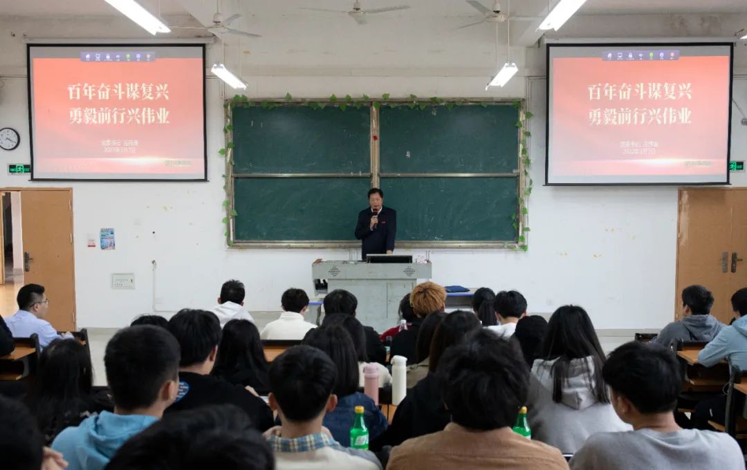 学院党委书记庄伟廉以《百年奋斗谋复兴 勇毅前行兴伟业》为题,从“镌刻史册的伟大飞跃不可逆转的复兴进程”“气象万千的伟大时代 浓墨重彩的崭新篇章”“永葆初心的大党担当 伟大光荣的历史贡献”“弥足珍贵的精神财富 开创未来的行动指南”等四个方面,为水务2031、2032班学生深情讲述了党的百年奋斗历程。他勉励学生在新的百年,要听党话、感党恩、跟党走,同心向党,奔赴远方。