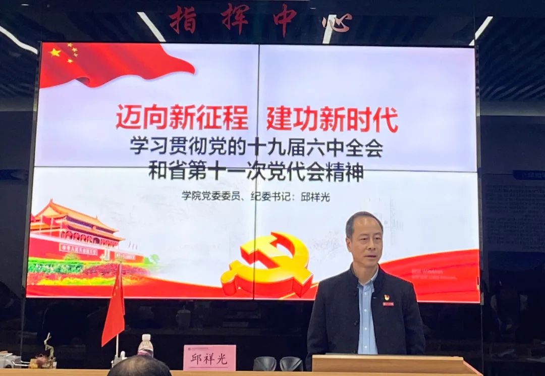 1月5日下午,学院纪委书记邱祥光走进电力工程系为全体教职工作《“迈向新征程 建功新时代”认真学习贯彻党的十九届六中全会和省第十一次党代会精神》宣讲报告。