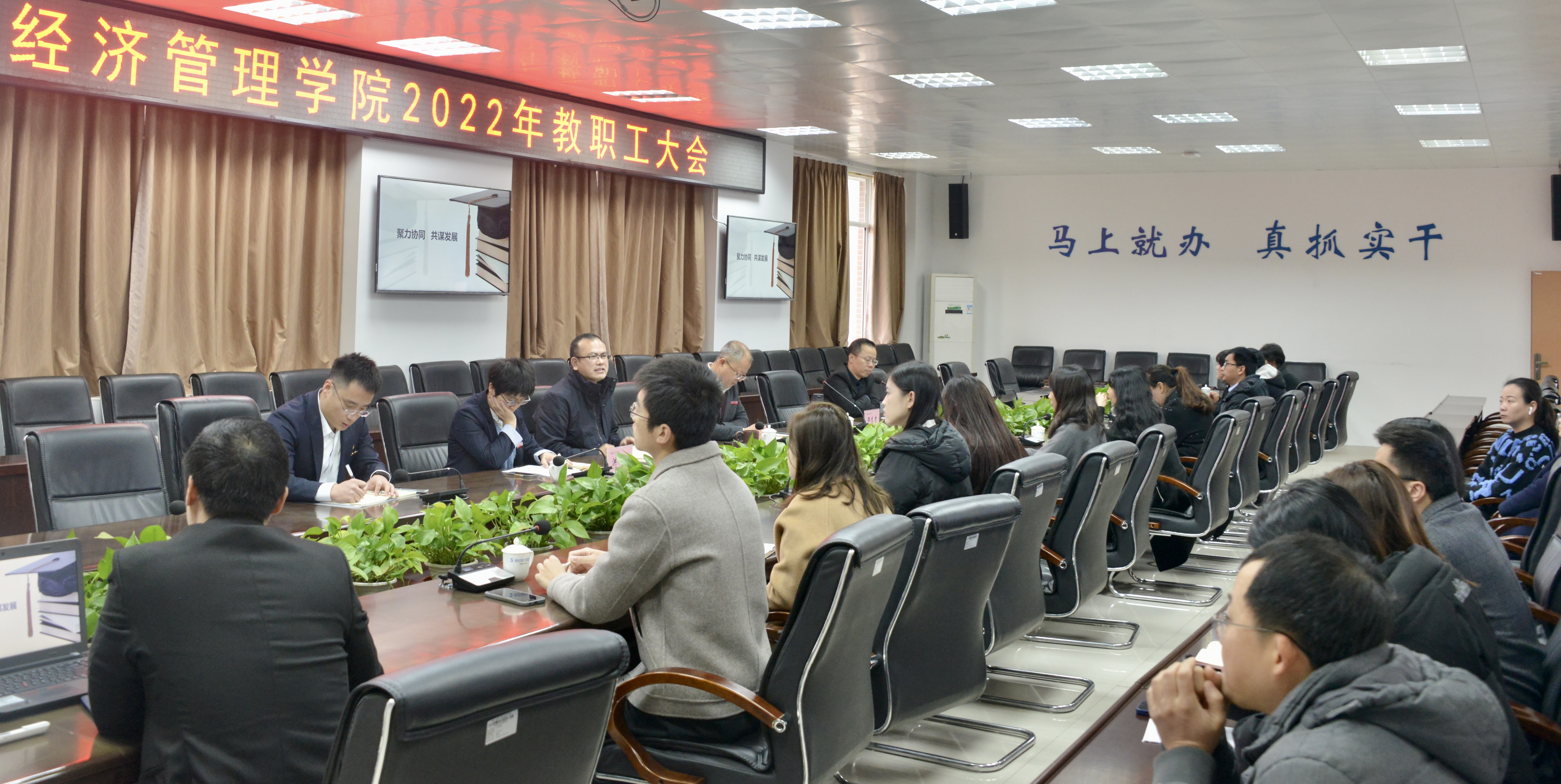 1月8日,经济管理学院2022年教职工大会在第二会议室召开,学院副院长兼经济管理学院院长池长全出席会议并讲话,计划财务处处长林春树以及经济管理学院全体教职工出席会议。经济管理学院副院长翁祖乐主持会议。