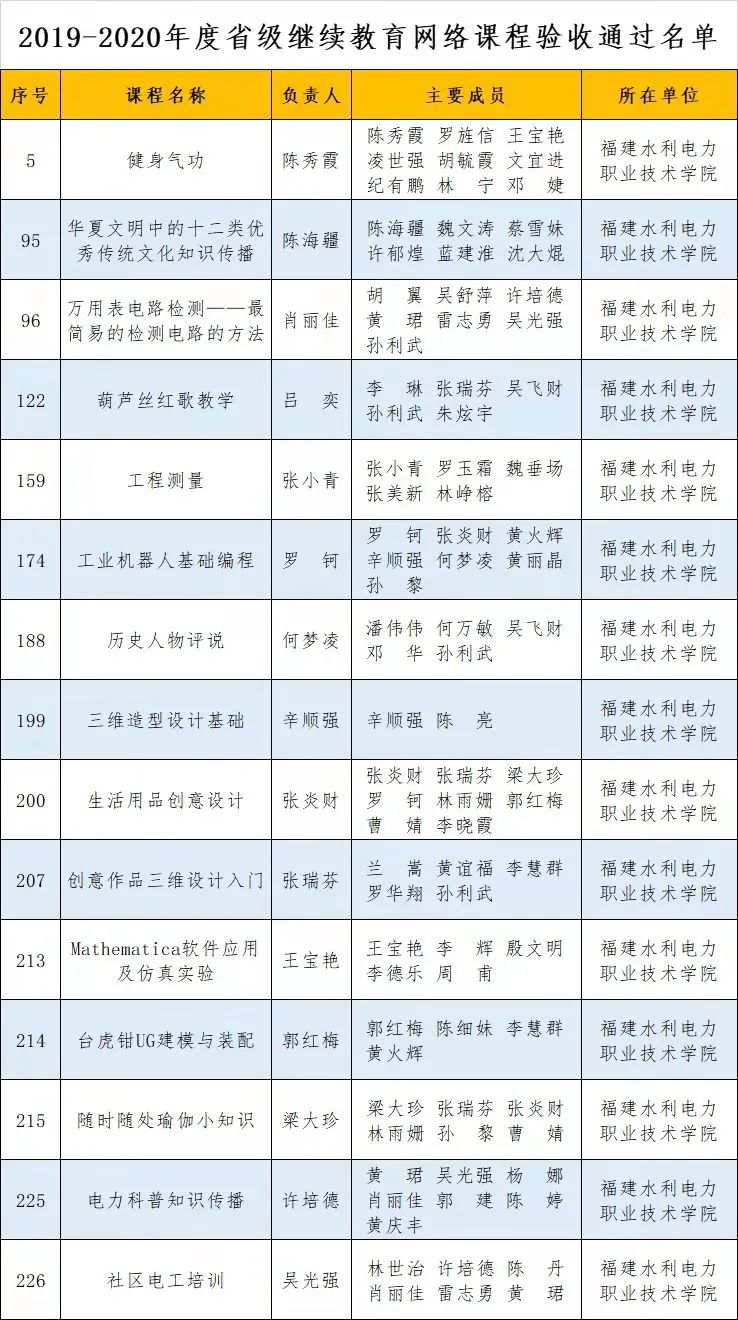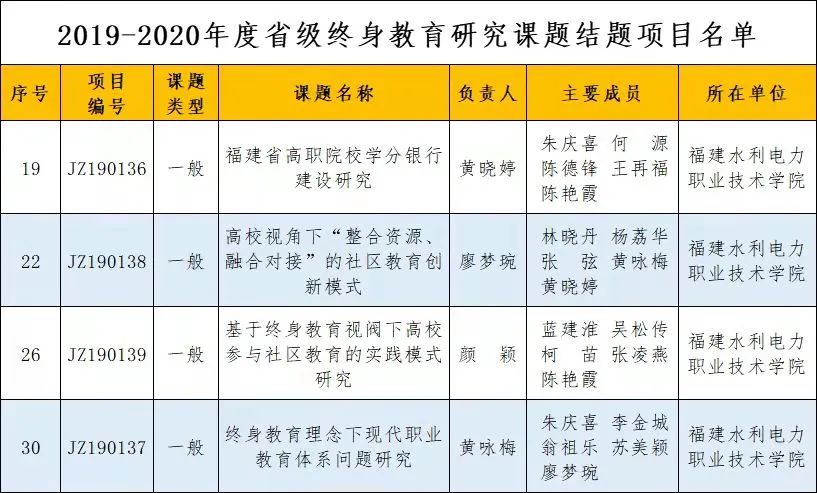 日前,根据《福建省终身教育促进委员会关于公布2019-2020年度省级终身教育研究课题结题项目和继续教育网络课程验收通过名单的通知》(闽终教委办〔2021〕5号),我院4个省级终身教育研究课题结题项目和15个省级继续教育网络课程通过验收。
