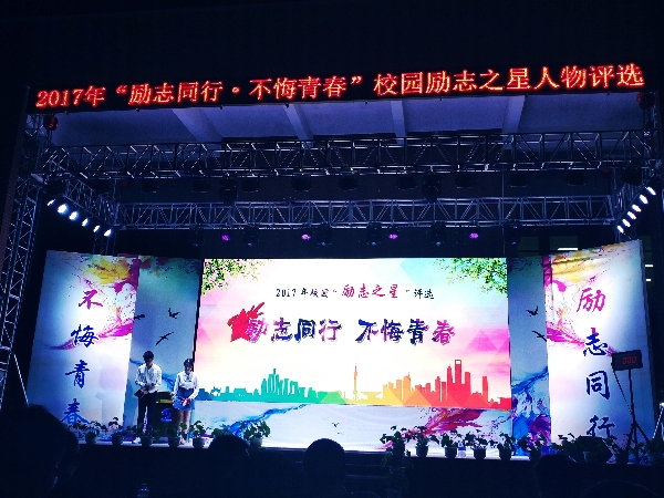 5月9日晚19:00,2017年“励志同行·不悔青春”校园励志之星评选活动在学院小舞台隆重举行。本次评选由学生资助管理中心主办,学生宣传中心、勤工助学互助会承办。炫亮的舞台、激扬的音乐、涌动的人群,将夏日的夜晚晕染得紧张而又热烈。