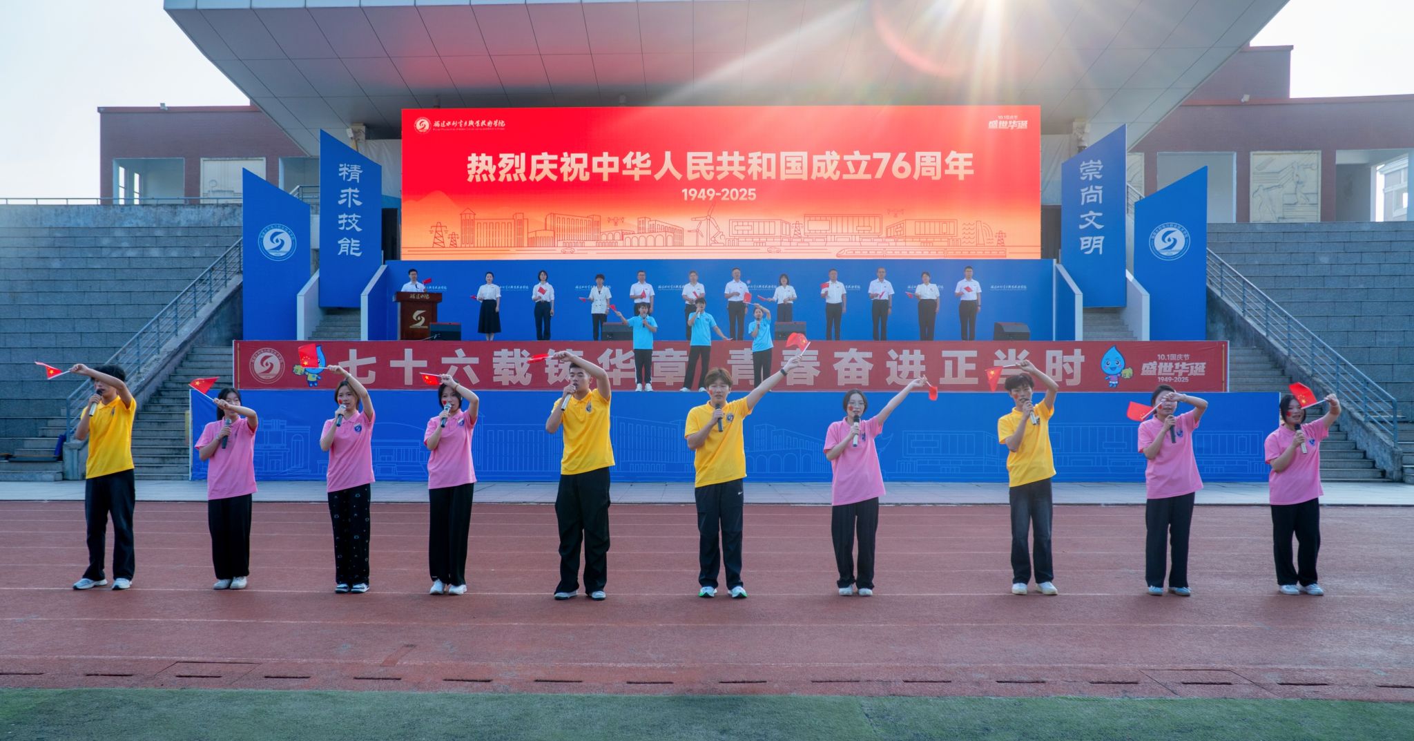 在雄壮的国歌声中,五星红旗冉冉升起。全场师生肃立注目,齐声高唱国歌,向伟大的祖国致以最崇高的敬意。师生代表朗诵《请党放心 强国有我》、合唱歌曲《时光》,传递水院人对祖国的赤诚祝福,发出青春强国的铿锵誓言。“我愿以奋斗之青春,护祖国之山河!”国旗护卫队队员、退伍学生高志凯深情向祖国告白。300名学生迈着矫健的步伐参与环校跑,以奔跑之姿生动诠释“青春向祖国报到”的响亮口号。