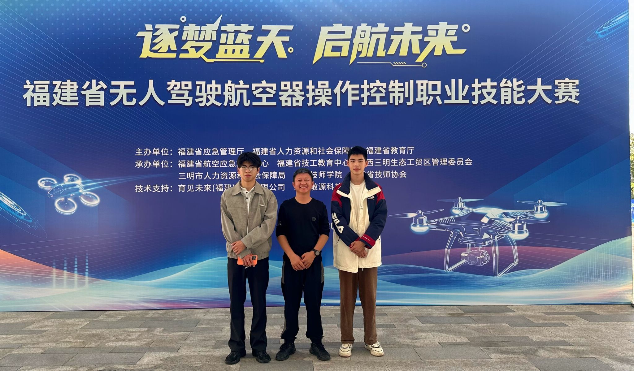日前,由福建省应急管理厅、人力资源和社会保障厅、教育厅联合主办的2025年福建省无人驾驶航空器操作控制职业技能大赛在三明市沙县区举办。学校自动化工程学院柯鹏伟、敖思锦同学参赛,由吴飞财老师指导组成的代表队参与学生组竞赛,在全省31支参赛队伍中脱颖而出,获得学生组第五名(优胜奖)。