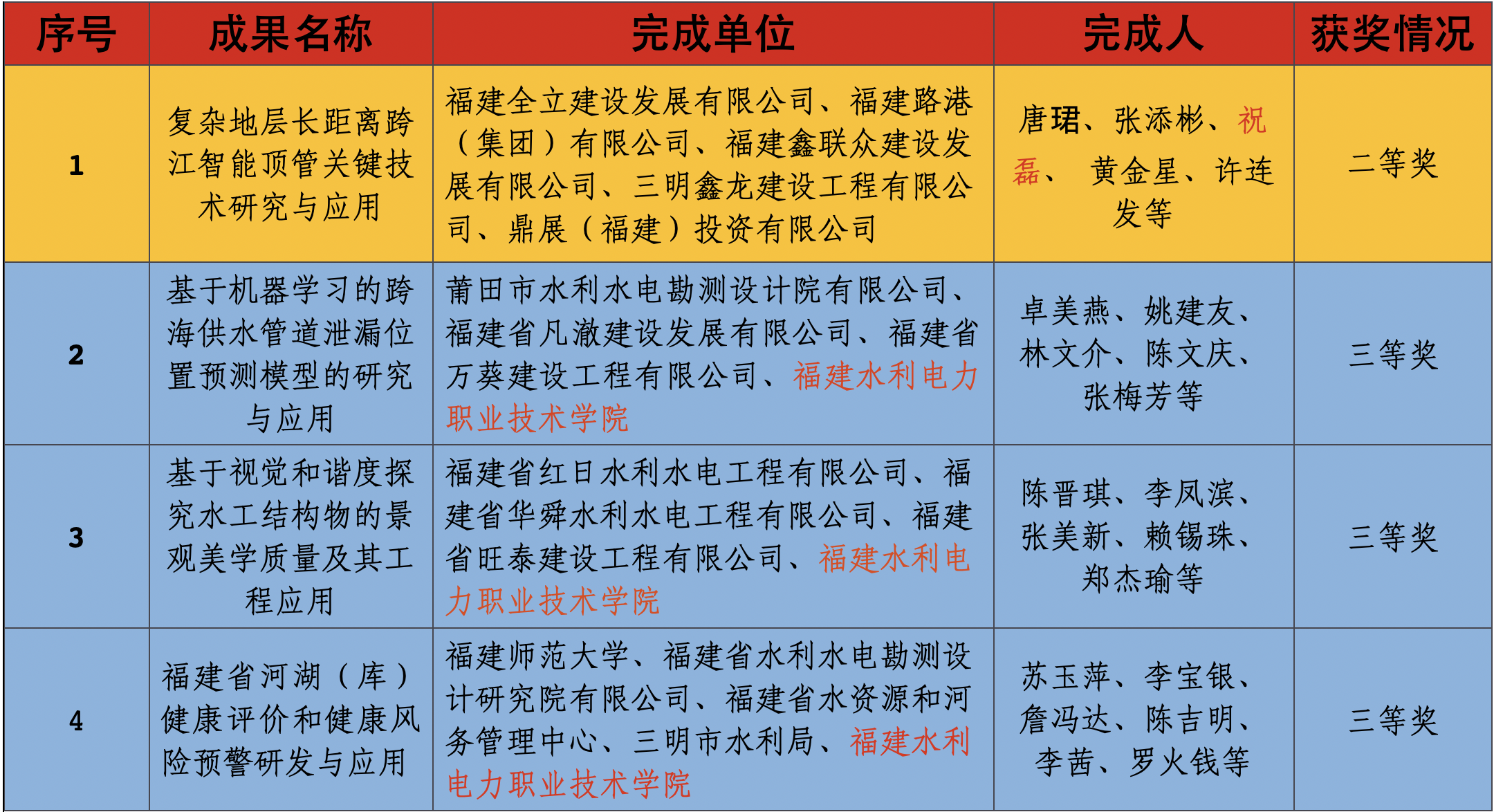 近日,经福建水利科学技术奖评审委员会会议评审,评出了2023年福建水利科学技术奖项目50项,其中一等奖8项、二等奖15项、三等奖27项。