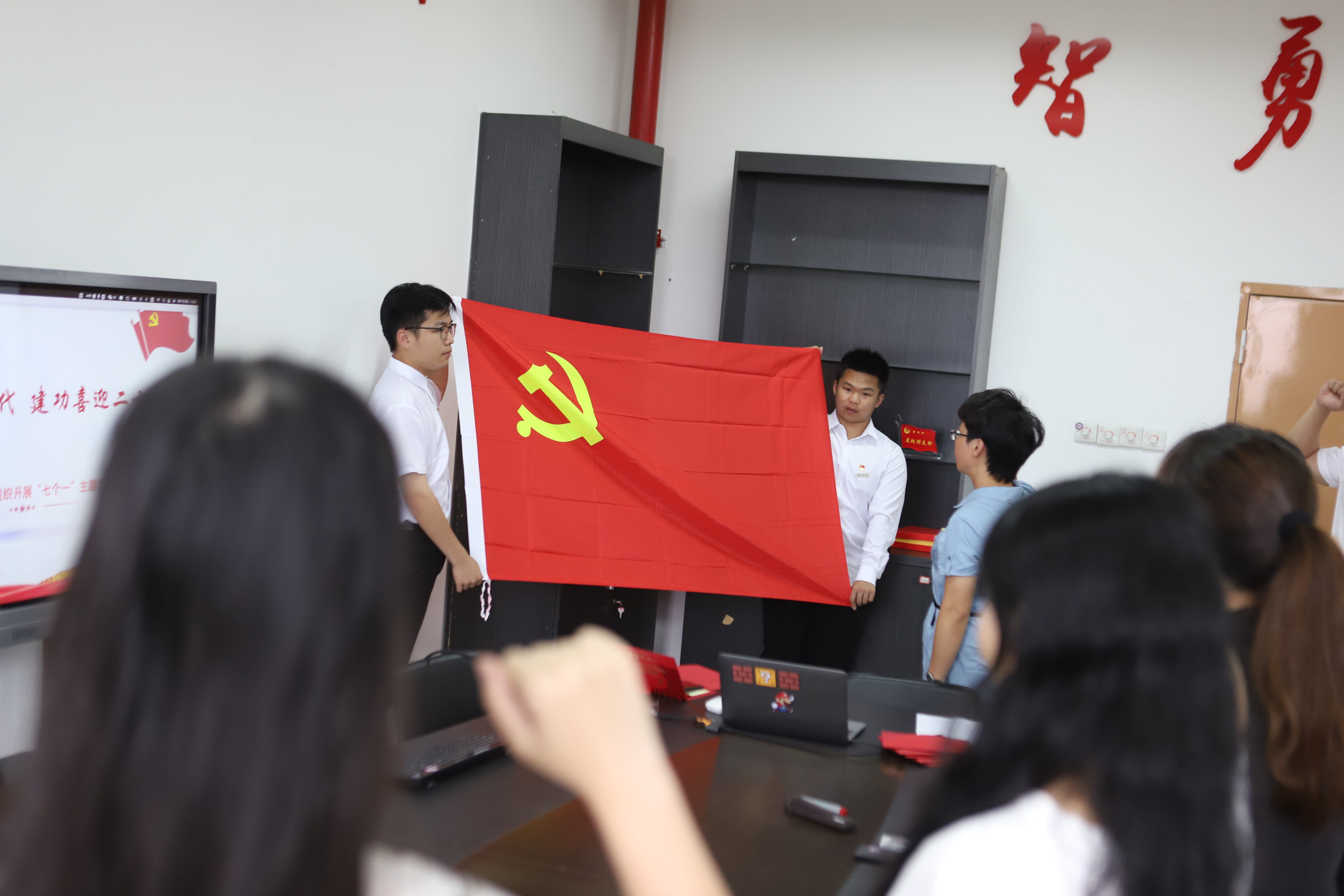 党总支副书记洪舜华同志带领全体党员面向党旗举起右手庄严宣誓,重温对党的铮铮誓言,激励全体党员铭记入党誓言,坚定不移听党话、跟党走,做信念坚定、对党忠诚的共产党员。