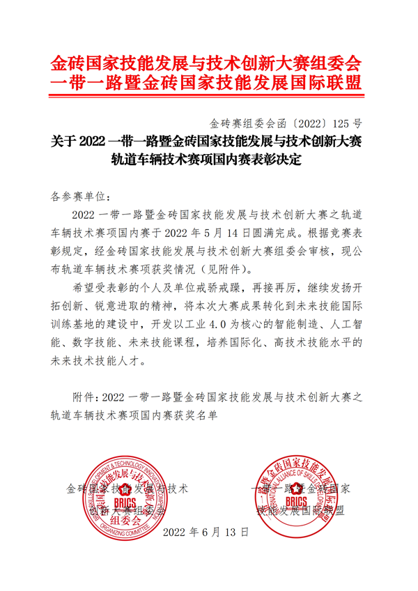 5月14日,2022一带一路暨金砖国家技能发展与技术创新大赛之轨道车辆技术赛项全国海选赛在”云端“正式开幕。来自全国24个省、市、自治区的135所职业院校选手同台竞技。我院吴坤华、李忠良老师精心指导的卢云菲、傅杰团队沉着应战、不畏强手,最终斩获三等奖。