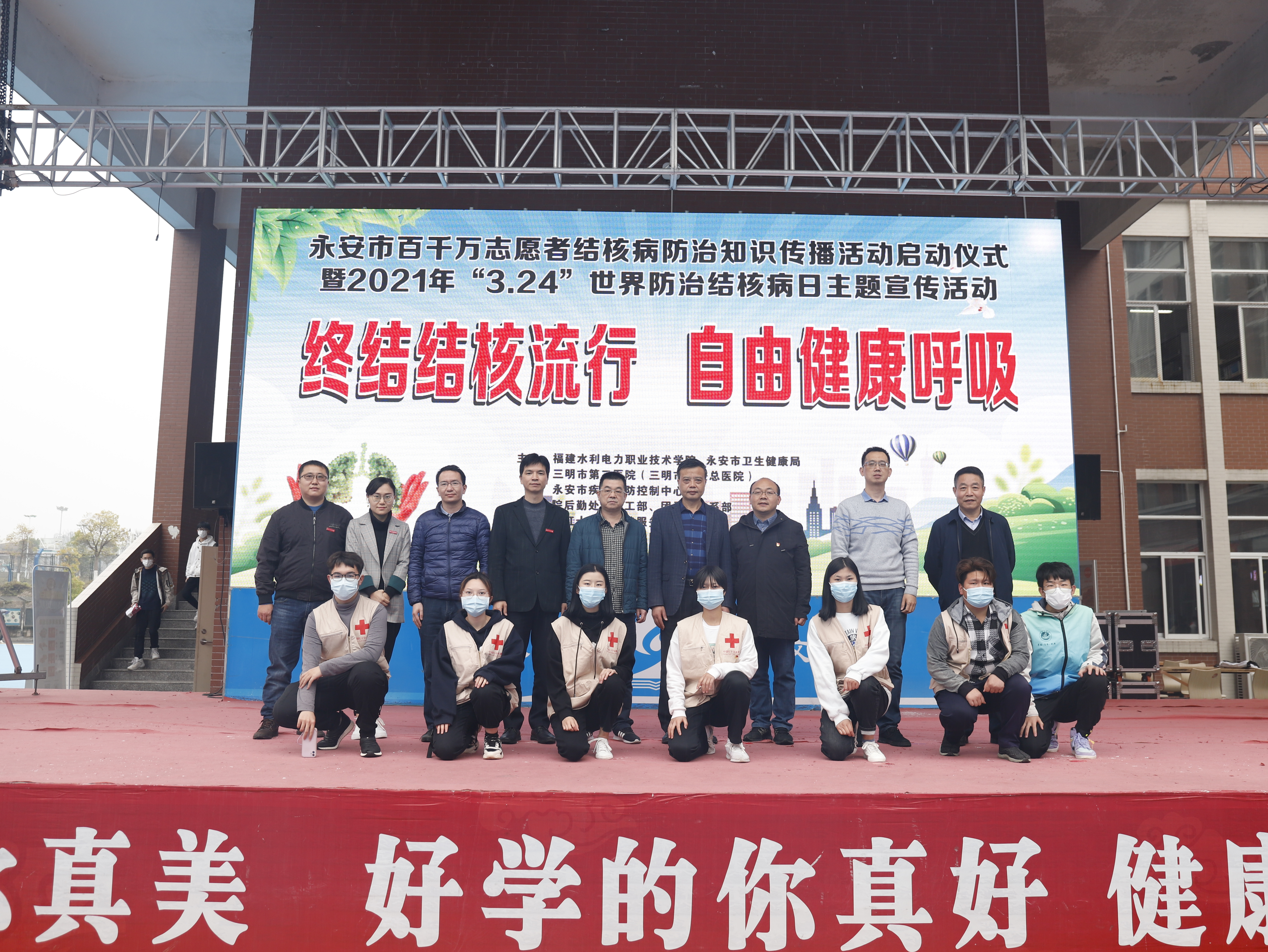 3月23日下午,学院联合永安市卫健局、三明市永安总医院和永安市疾病预防控制中心、燕南社区卫生服务中心在综合楼广场开展以“终结结核流行 自由健康呼吸”为主题的百千万志愿者结核病防治知识传播活动启动仪式宣传系列活动。学院副院长李建平,市卫健局副局长赖建华,市疾控中心主任范光,后勤处、学工部、团委、医务室及志愿者等350余人参加。