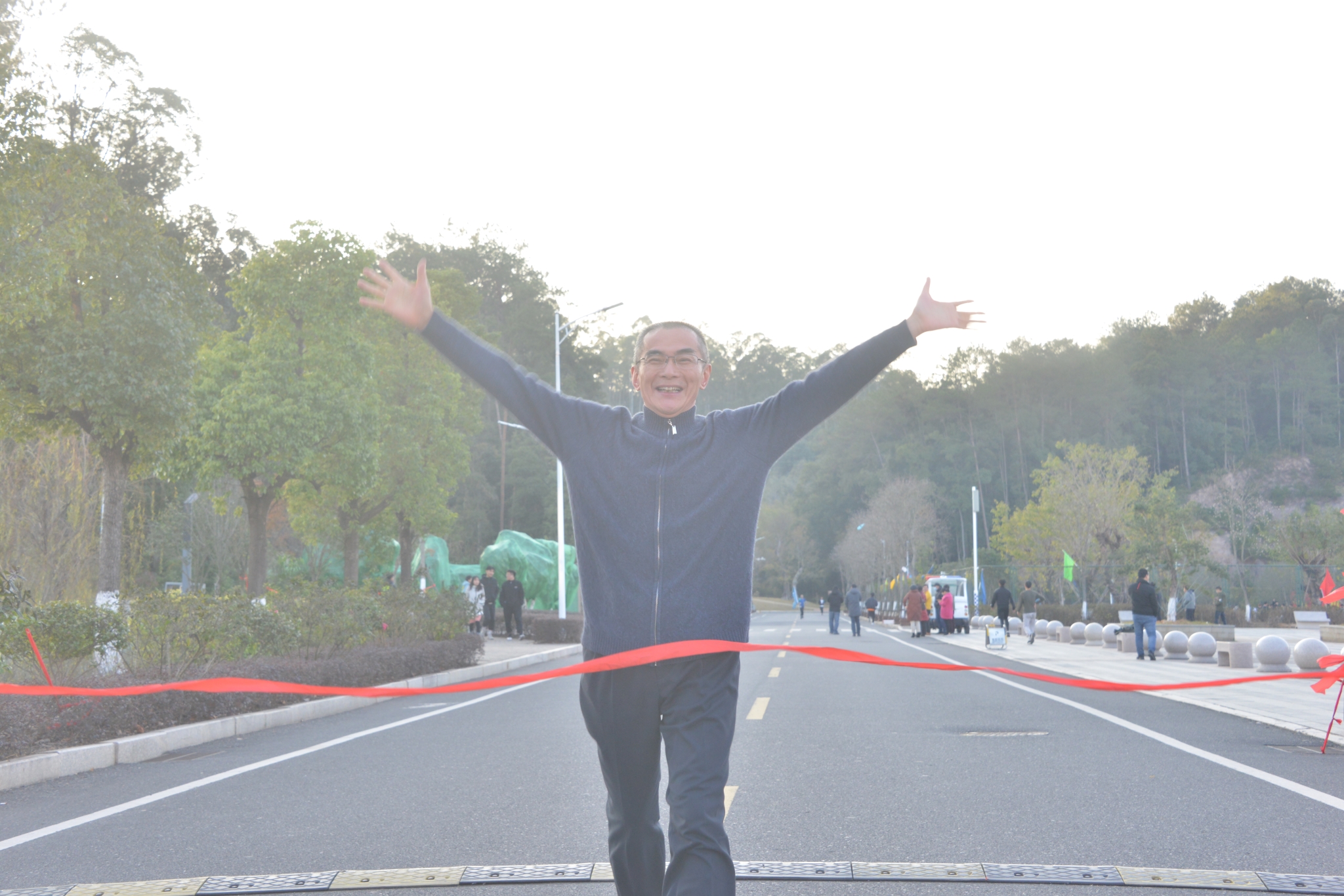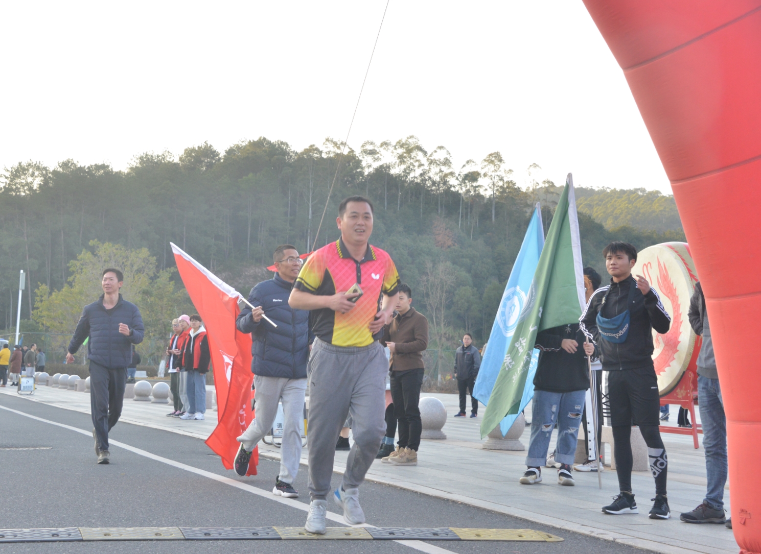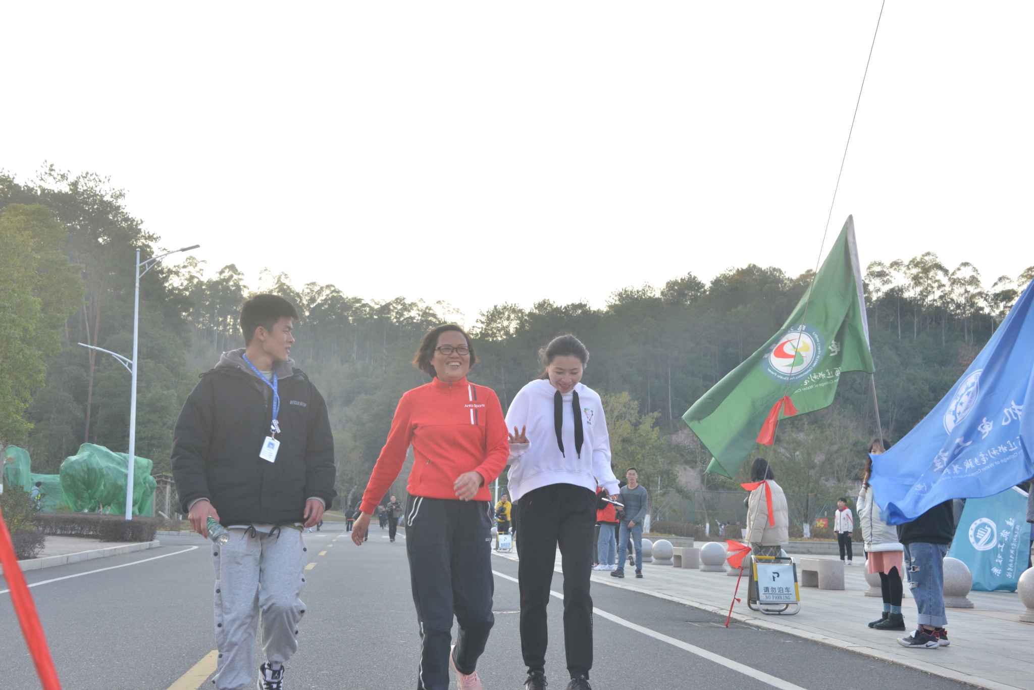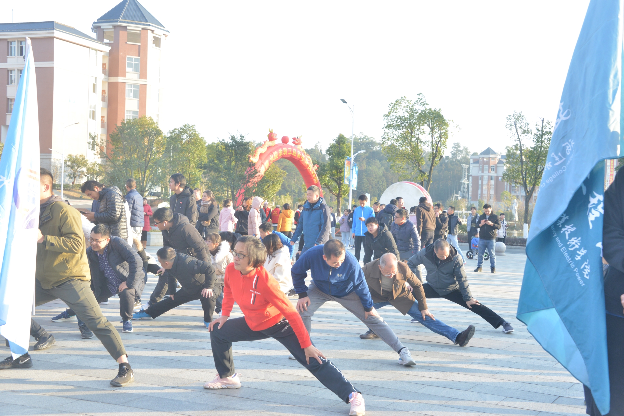 跑前热身后,在学生舞狮擂鼓助兴加油中,随着学院领导扣动发令枪,大伙儿争前恐后从路港体育馆起跑出发。教职工们迈着有力的步伐,你追我赶,以充满朝气的精神和坚韧的意志,沿着溯源路、李冰园、禹兴园、闽水大道,最后回到起点,圆满完成了2.2公里的环校园健身跑。此时虽是寒冬,但教职工们团结和奋勇前进的精神如冬日暖阳充满整个校园。