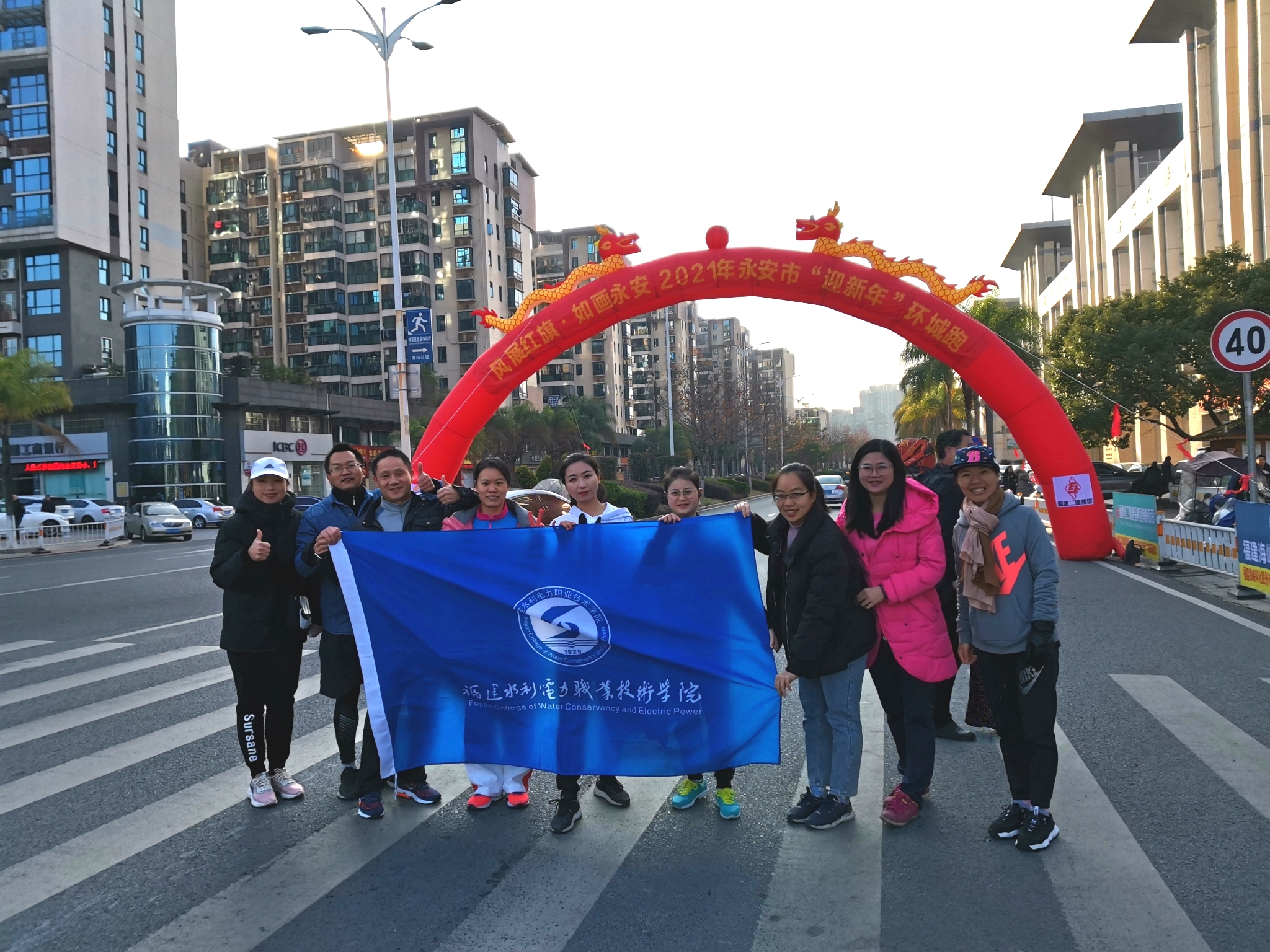 此外,我院有150名师生参加了当天上午举行的2021年永安市“迎新年”环城跑,参加人数创新高,有5名进入男子组前十名,并被授予优秀组织奖。