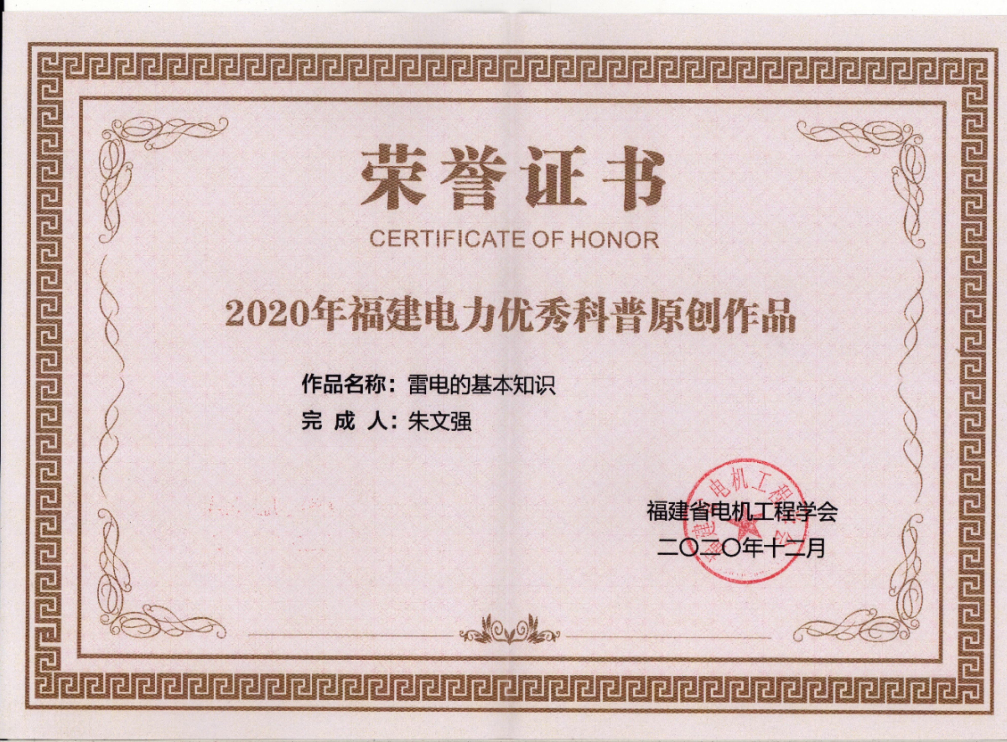 日前,福建省电机工程学会公布了2020年度福建电力优秀科普原创作品奖的获奖名单,我院选送的《雷电的基本知识》位列其中。这是我院获批国家级科普教育基地、省级科普教育基地后取得的又一项荣誉。