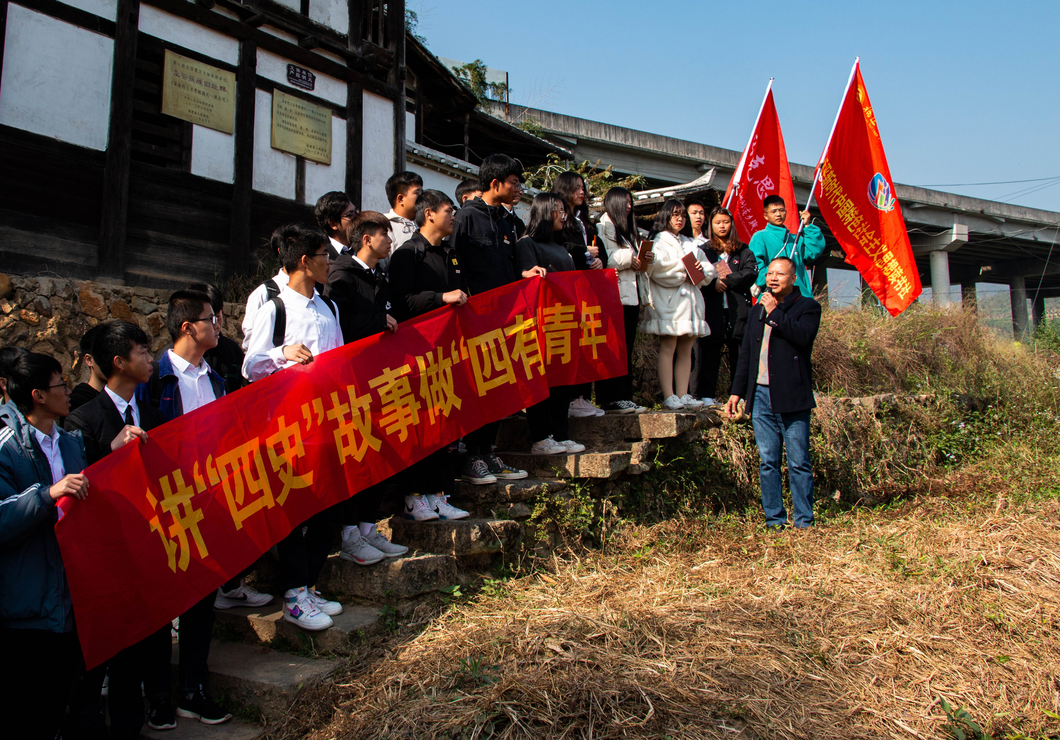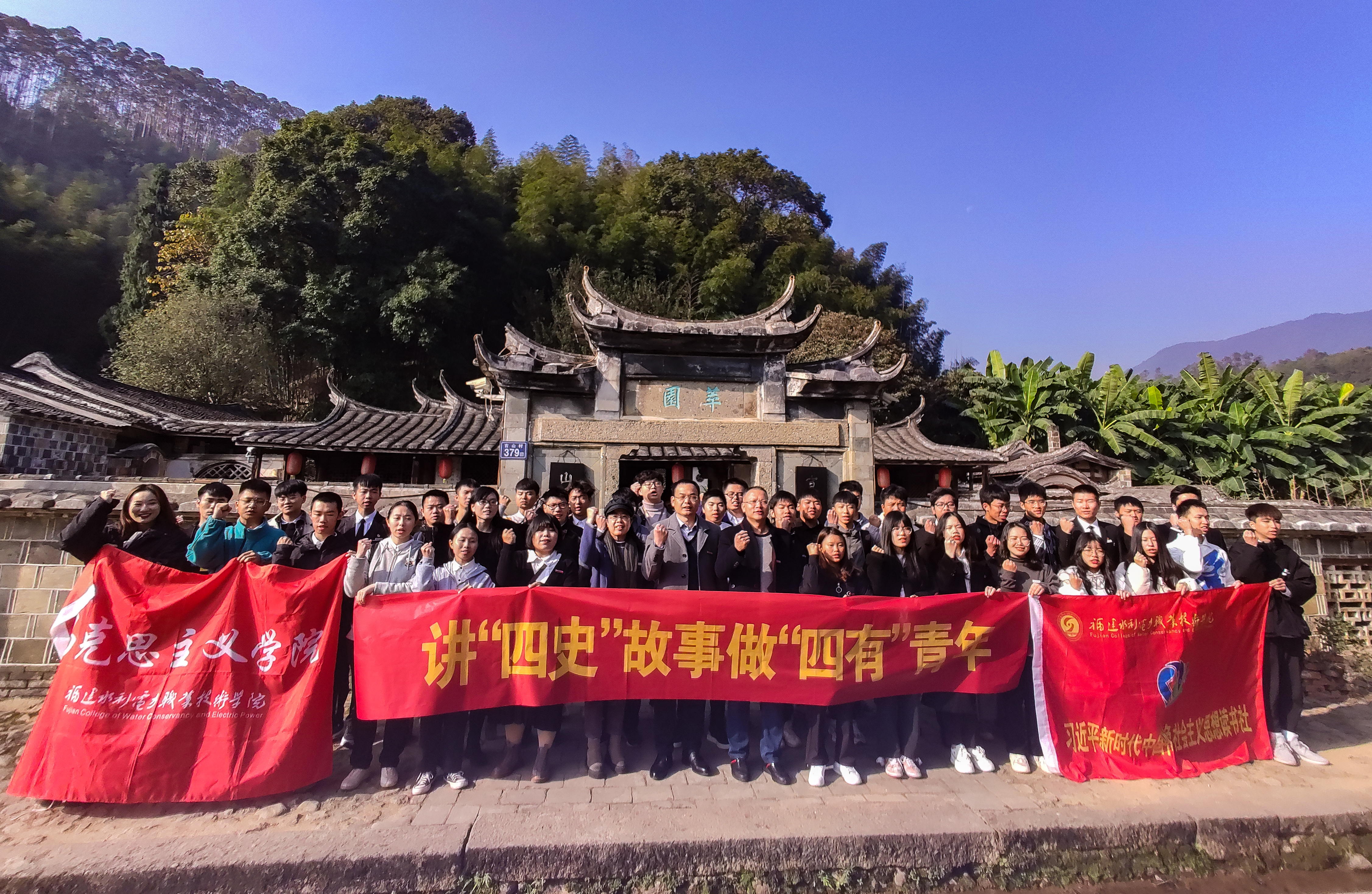 为纪念抗战胜利75周年,国家公祭日前夕,学院马克思主义学院院长张盛文、习近平新时代中国特色社会主义思想读书社(以下简称读书社)指导教师陈承财及部分思政教师,组织读书社学生前往永安市吉山抗战旧址群爱国主义教育基地开展“四史”现场实践教学活动。