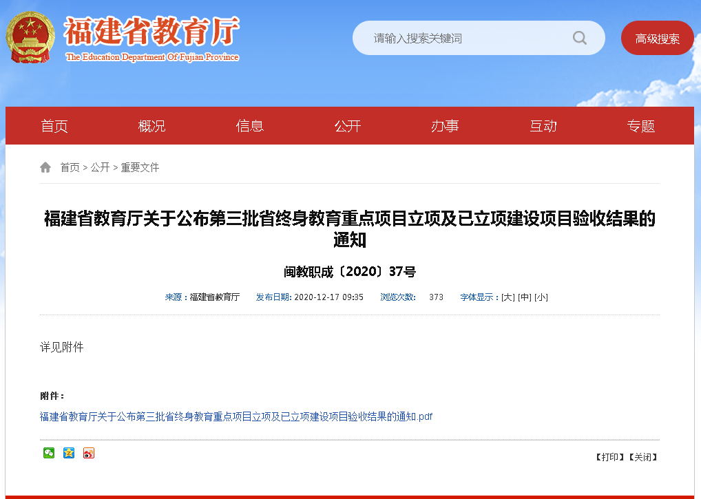 附件:闽教职成〔2020〕37 号 福建省教育厅关于公布第三批省终身教育重点项目立项及已立项建设项目验收结果的通知.pdf