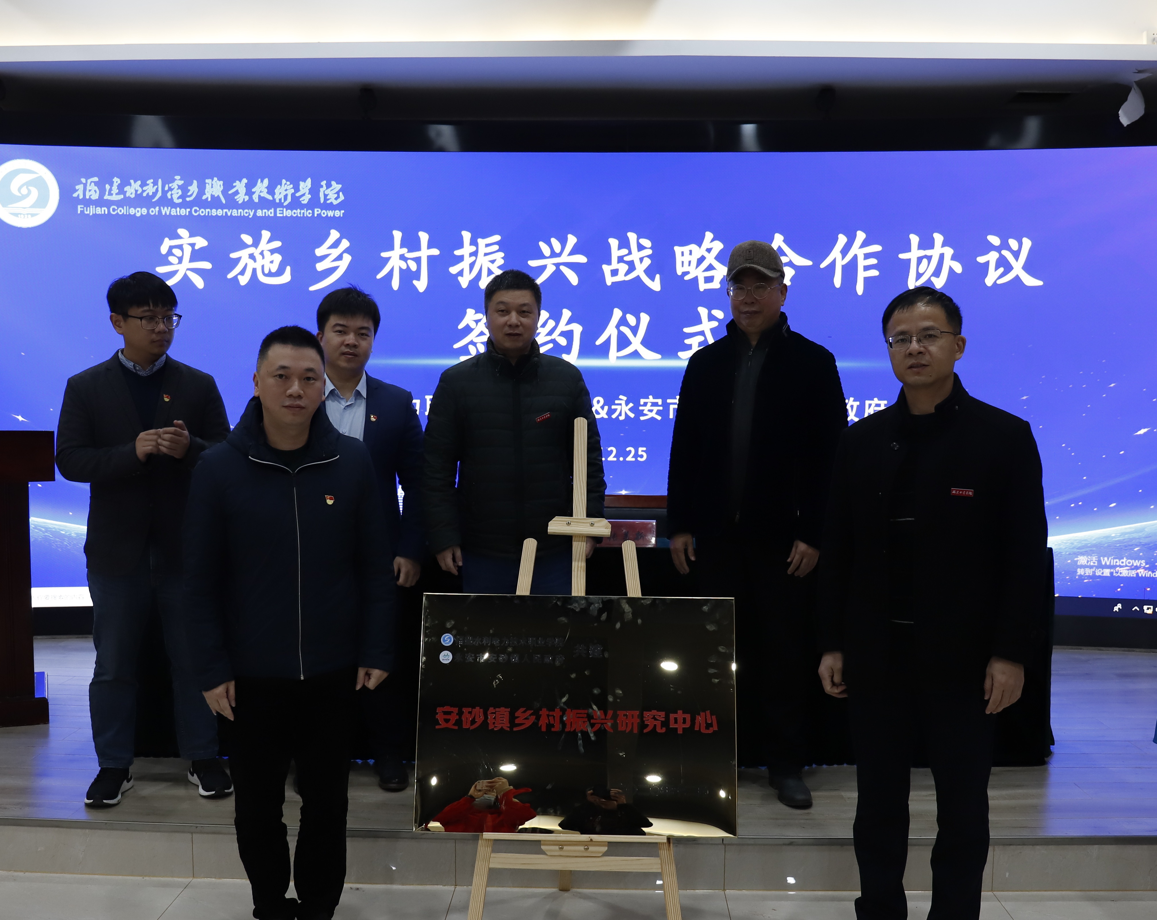 12月25日下午,由我院与安砂镇共建的“安砂镇乡村振兴研究中心”在VR综合实训基地揭牌成立。水利工程系主任张美新、党总支书记刘华斌,安砂镇人民政府有关领导及师生代表出席签约、揭牌仪式。
