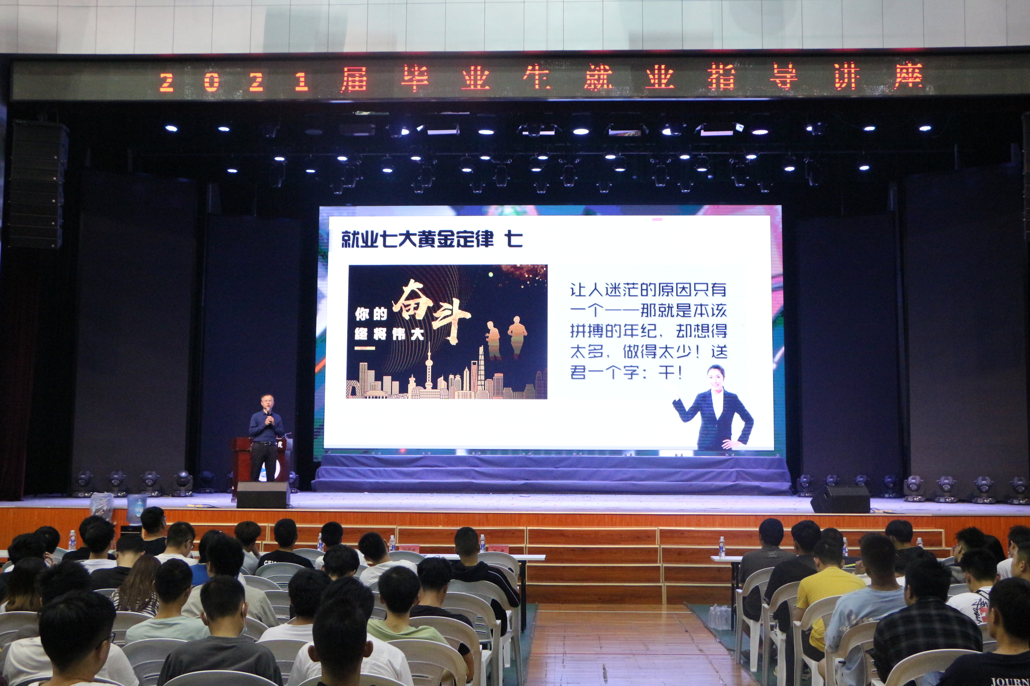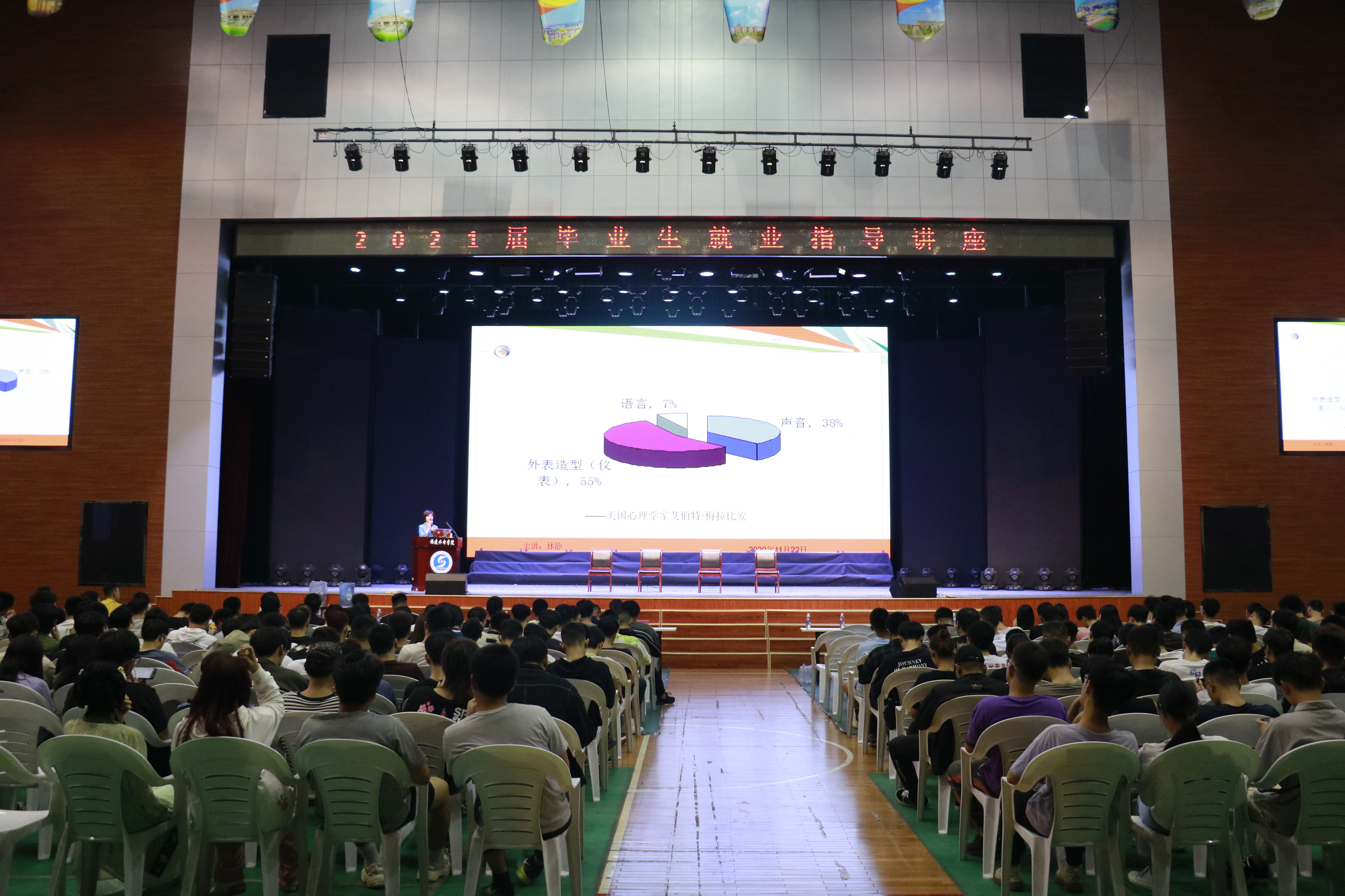 11月22日晚,水利工程系在路港体育教学馆举办了一场就业指导专题讲座,系专兼职辅导员及2018级、2019级学生共计1000多人参加,系团总支书记赖德莉主持讲座。
