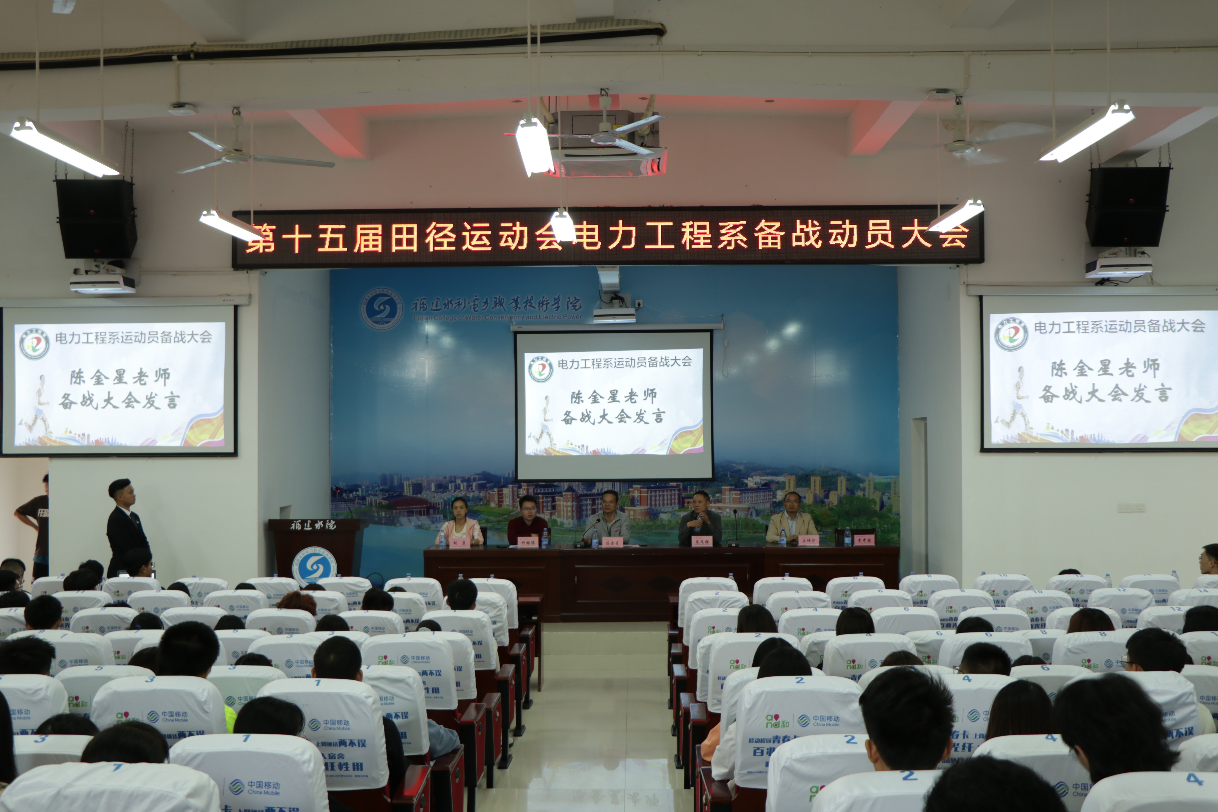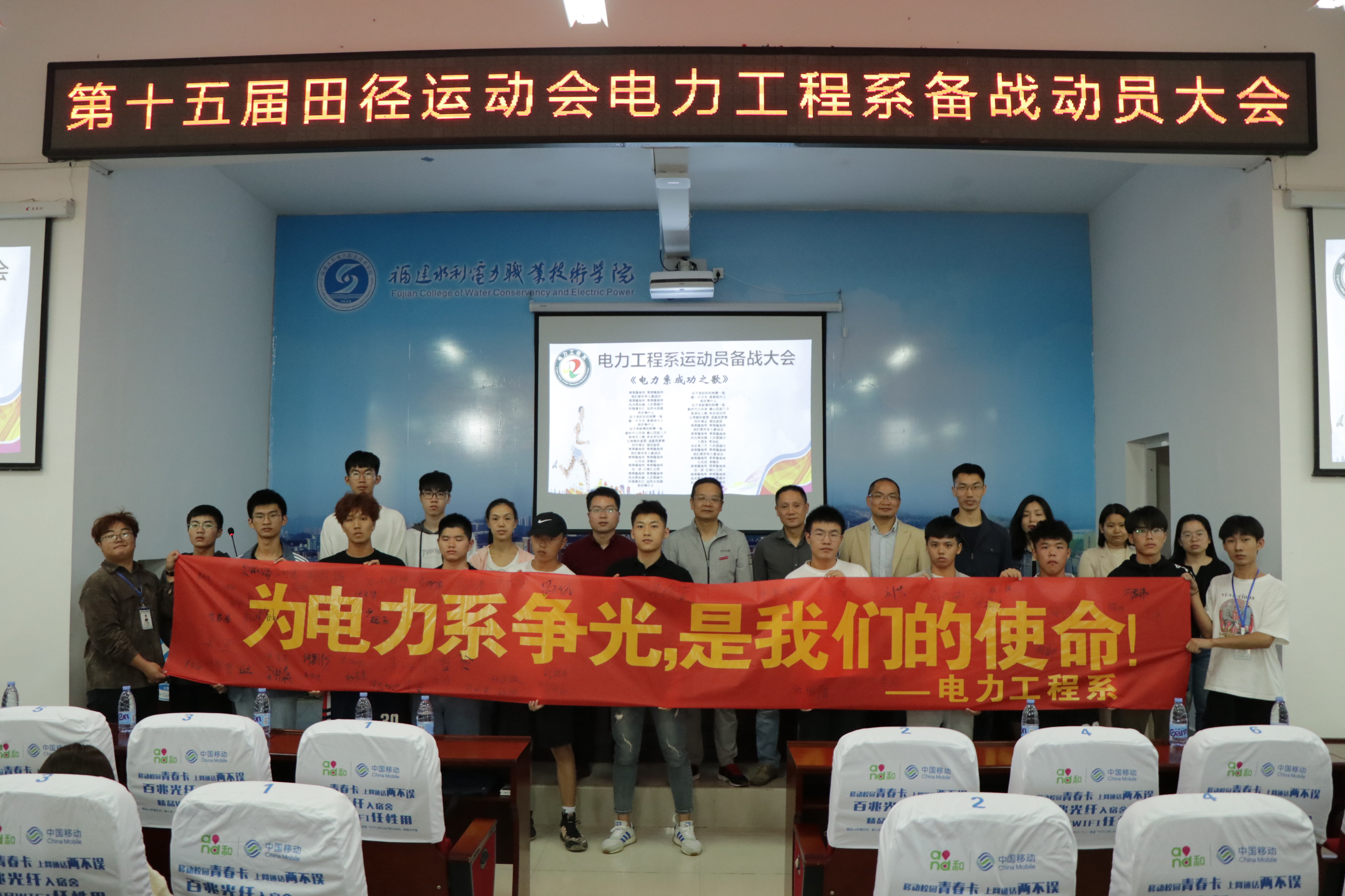 11月1日下午,电力工程系在禹兴园3-112学术报告厅举行了学院第十五届田径运动会备战动员大会,系党总支陈金星,系副主任朱文强、许培德,教研室主任、全体专兼职辅导员老师及全体学生干部、运动员参加大会。