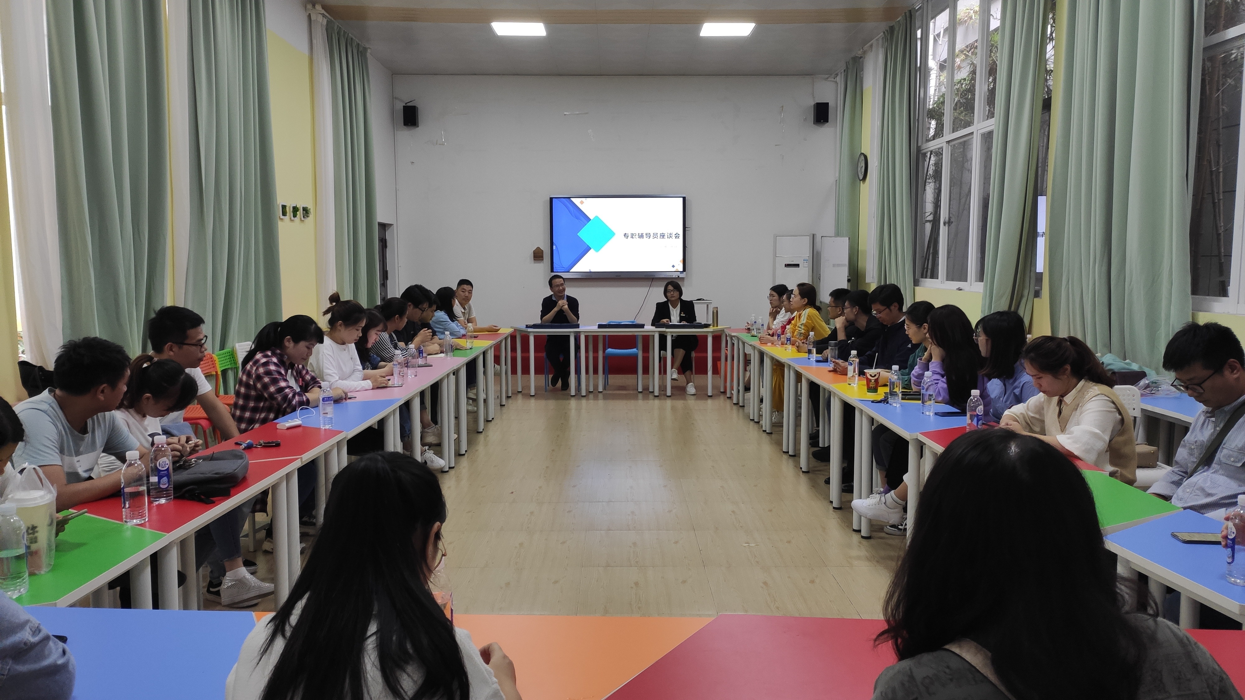 辅导员交流座谈会上,辅导员们立足于工作实际,围绕自身从事辅导员工作情况、所带学生特点、工作学习收获等不同方面,分享了从事辅导员工作的故事和感悟,用24小时不掉线的守候及时帮助学生处理问题表达了他们对这份工作的热爱。