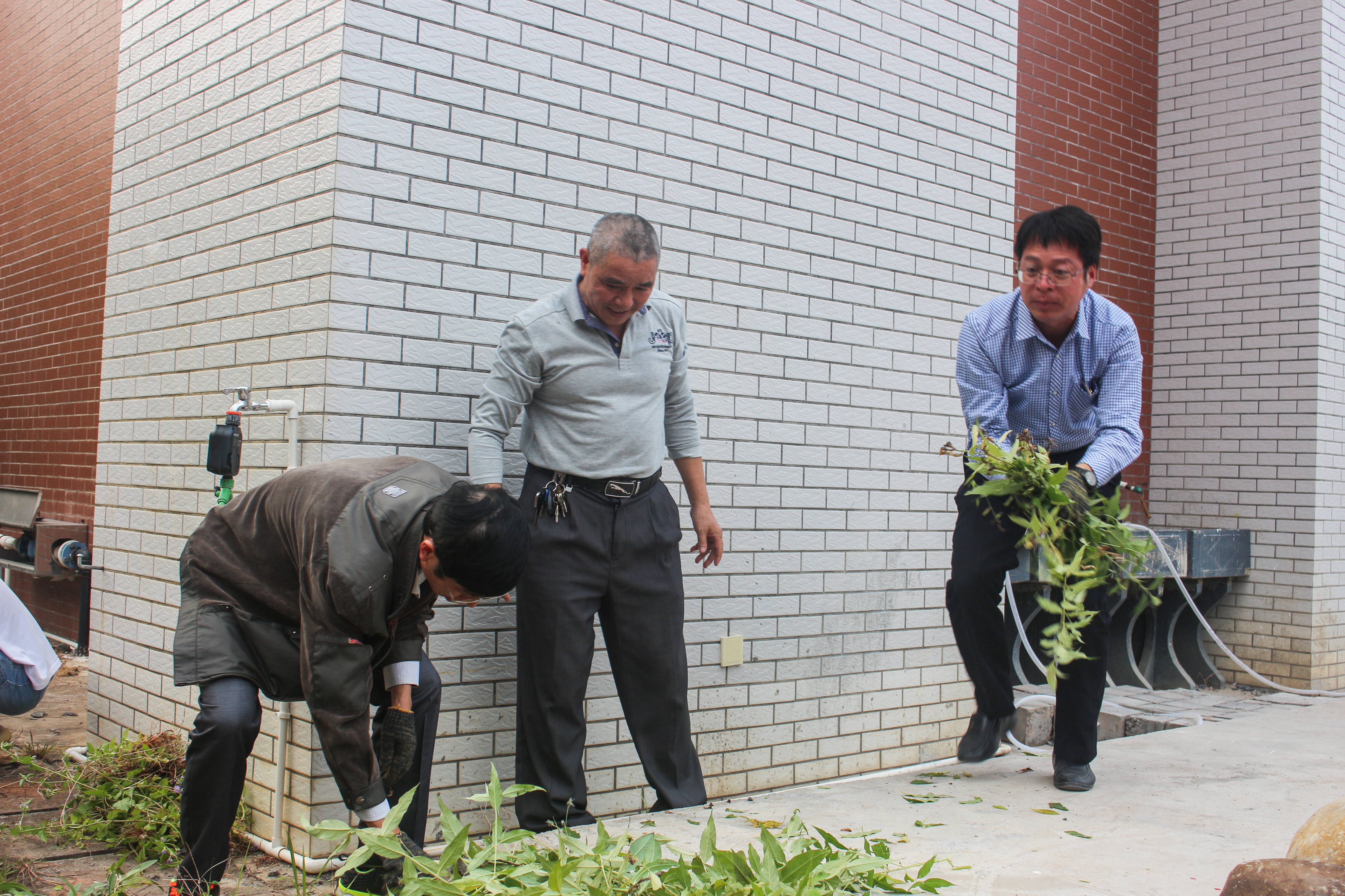 下午课后,系党政班子、教师及学生志愿者们共计200多人来到现场。大家纷纷拿起手中的劳动工具,有的踩着泥泞的草地捡拾垃圾,有的爬高上低清洁橱窗、栏杆,有的齐心协力铲除路边的泥土和杂草,现场随处可见师生们忙碌的身影,他们仔细认真,不放过任何卫生死角,认真细心地将杂草、纸屑、建筑垃圾等进行清扫,对杂乱的工具进行整理。在场的每一个人都热情高涨地积极投身清扫活动中,在大家的辛勤努力下,现场焕然一新。