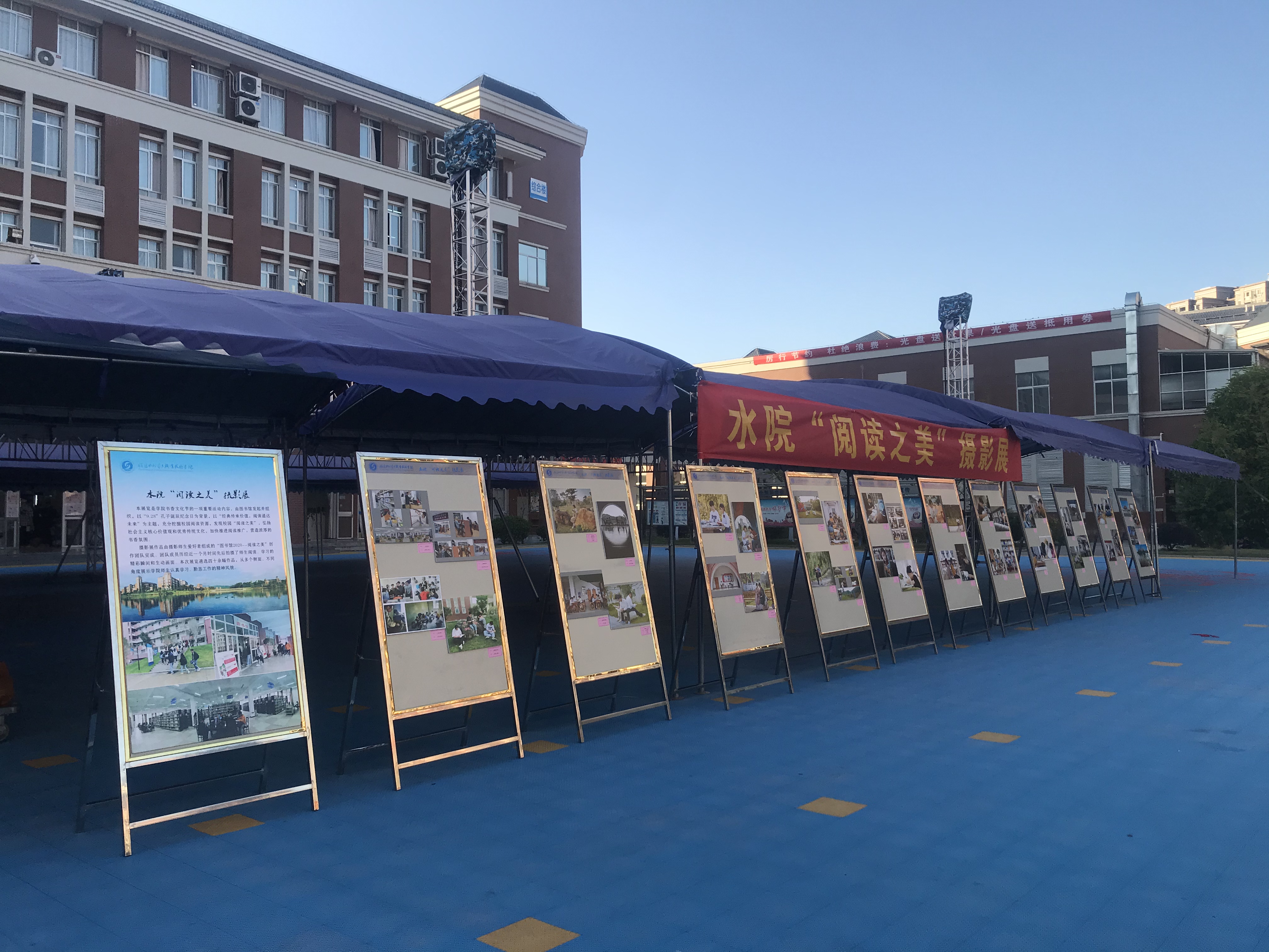 11月11日,图书馆主办的“阅读之美”主题摄影展在综合楼广场开展。