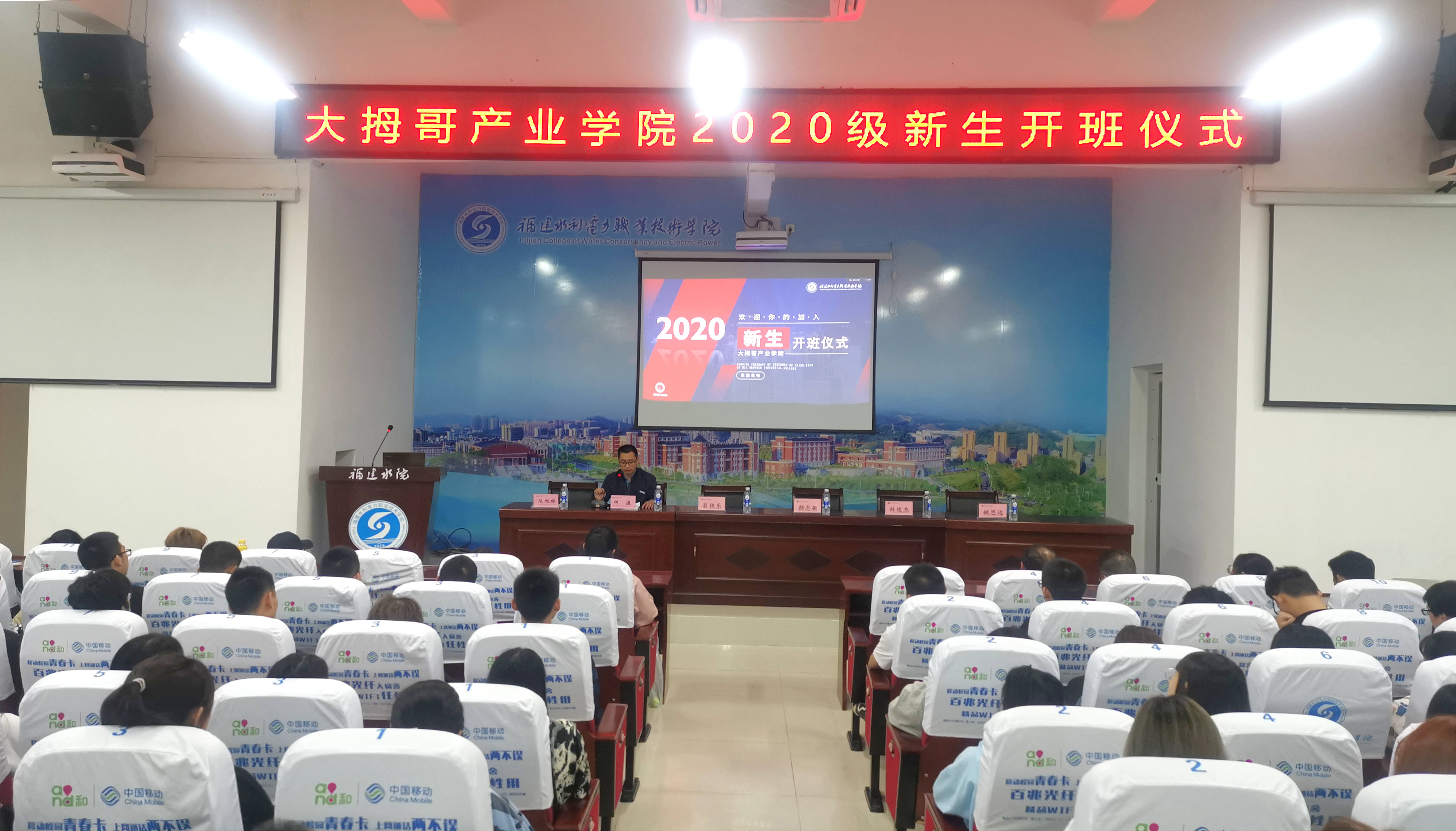 新学期,新征程。10月20日下午,大拇哥产业学院在第二学术报告厅举行2020级新生开班仪式。信息工程系副主任翁祖乐,建筑工程系副主任颜志敏,产业学院董事长何源、副董事长陈旭林,产业学院全体教师和产业学院2020级全体新生参加仪式。仪式由陈旭林主持。