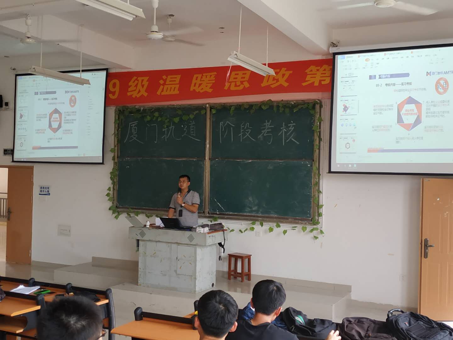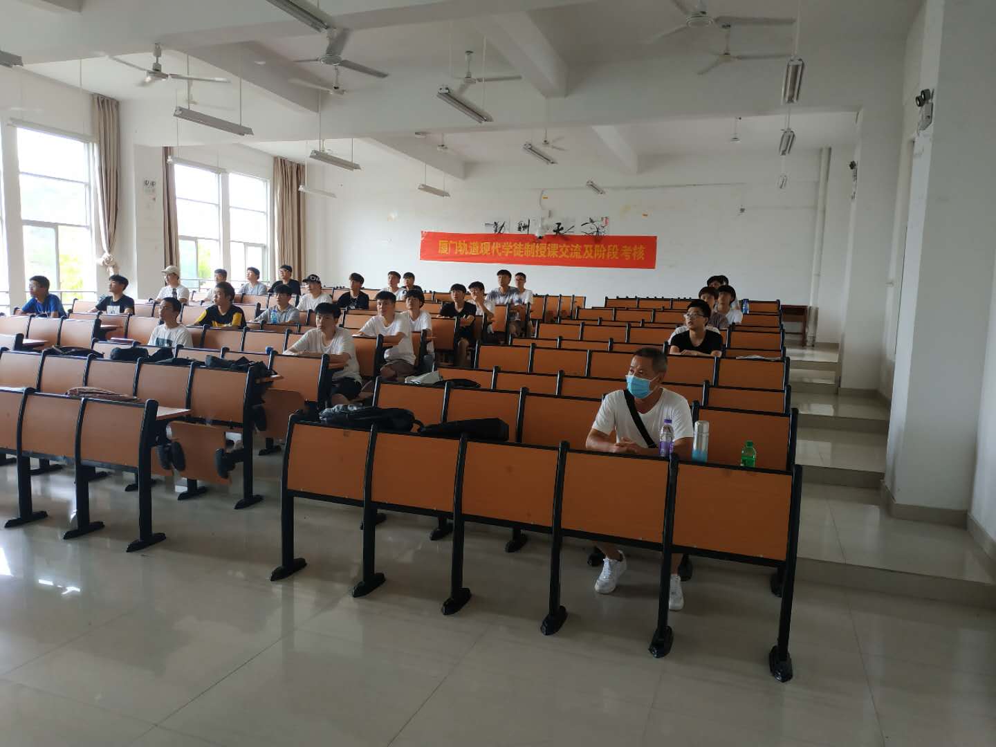 受疫情影响,考核人员简化考核程序。重点考核学生理论知识和道德修养,通过谈话了解学生的精神面貌和思想动态。因时制宜,特别叮嘱学生远离网贷,时刻警惕和防范因非法网贷造成的风险,树立正确金钱观,养成良好的消费习惯。他们还向全体轨道班学生讲述厦门轨道交通集团有限公司企业文化,介绍毕业生在公司的工作生活情况。