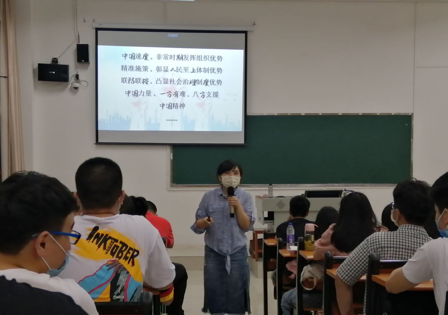 课堂以《战“疫”,我们在一起》为题,从疫情回顾、中国速度、中国制度、中国力量、中国精神、00后青年担当等六大方面,深入浅出地讲解我国疫情防控中一方有难、八方支援的大爱壮举,人民团结一心、共克时艰的精神风貌,不畏艰险、无私奉献的先进典型。