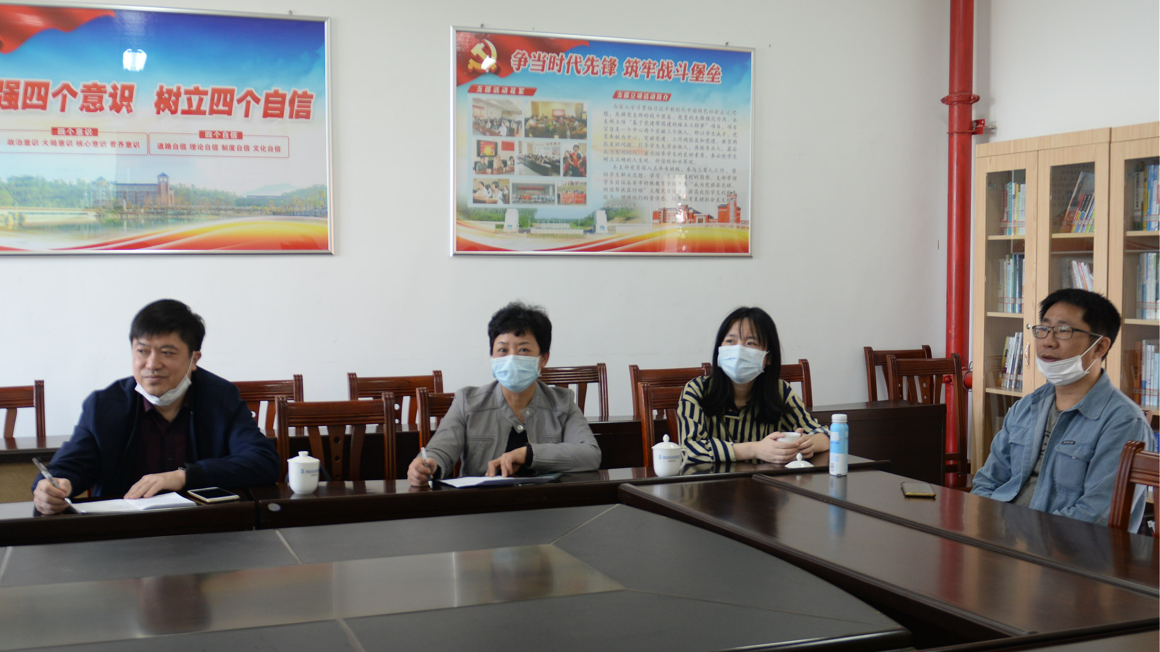 公共基础部主任王宝艳汇报了学院在语言文字方面的建设情况,着重说明了近年来为推广普通话所采取的各项措施和举办的活动以及申报普通话测试点的软硬条件,得到考察组的一致认可。随后,考察组一行实地考察了普通话测试室的硬件条件。